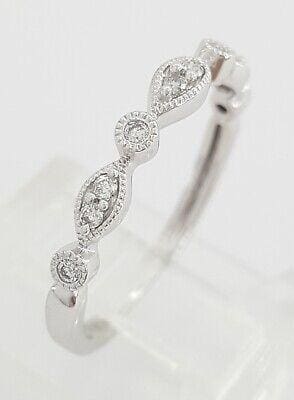 The ring weighs 1.3 grams, size 6, 2.9mm wide, there are 10 Natural Round Brilliant Cut diamonds measuring 1.3-1.4 mm in diameter, weighing approximately 0.12 ct, G-H in color, SI1-SI2 in clarity and are set in Beads setting.