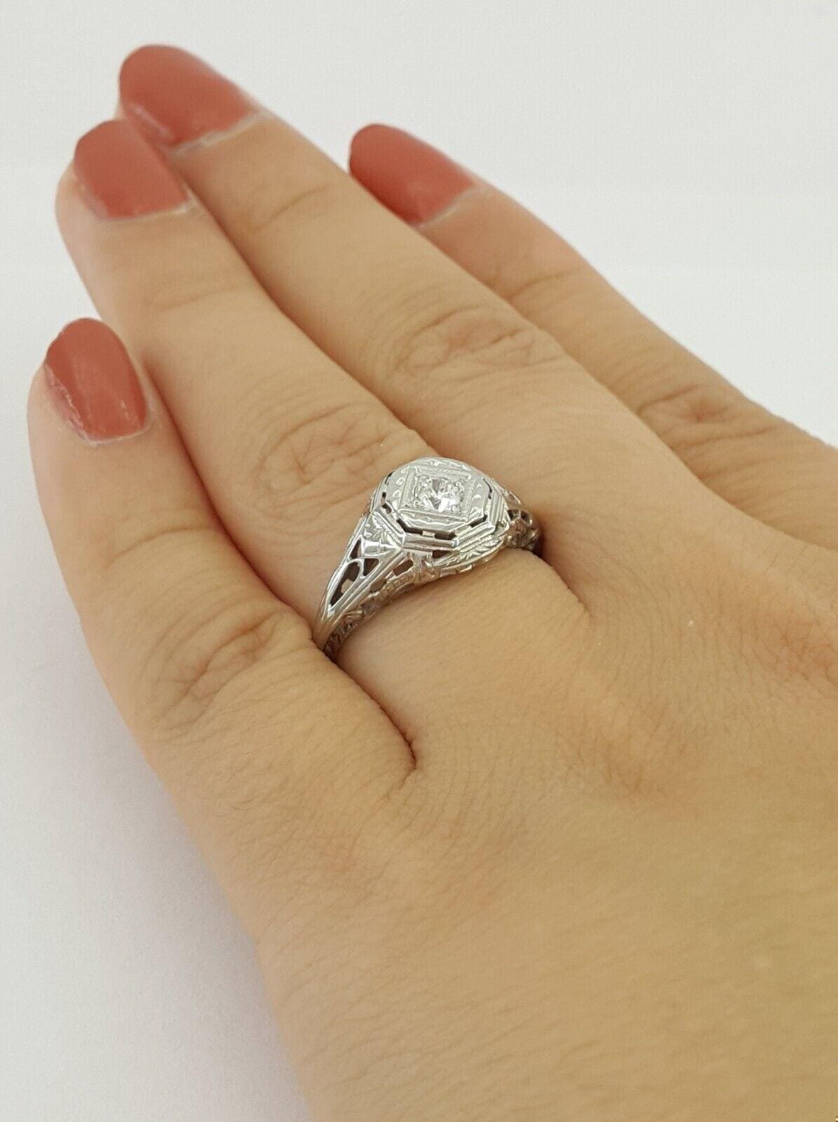 You are purchasing a Art Deco 0.14 ct total weight Vintage 18K White Gold Old European Cut Diamond Solitaire Engagement Ring.