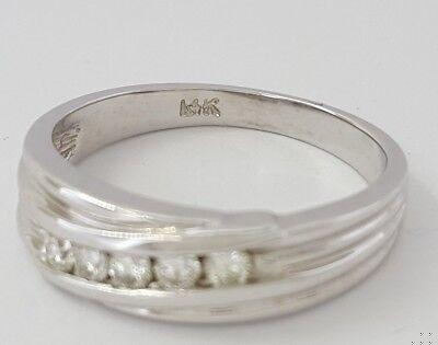 You are bidding on a 0.30 ct total weight 14K White Gold Round Brilliant Cut Diamond Wedding Band / Anniversary Ring. The ring weighs 4.8 grams, size 9, there are 5 Natural Round Brilliant cut diamonds weighing 0.30 ct, I-J in color, VS2-SI1 in clarity. The ring is stamped "14K". Please follow us on Instagram for more unique items & specials: Exquisite_Jewelers_Inc