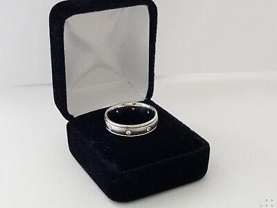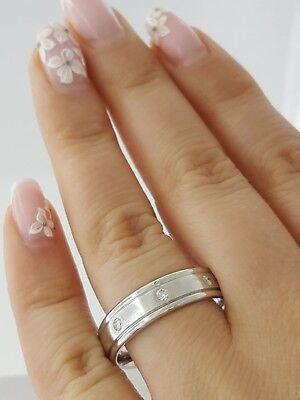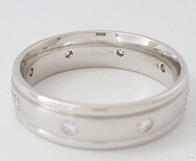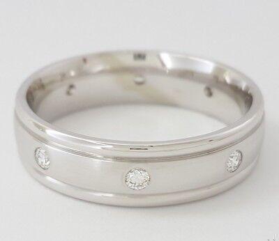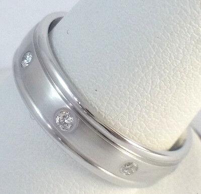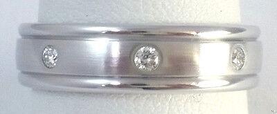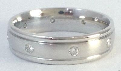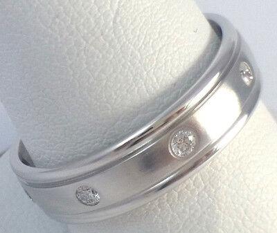 The ring weighs 7.3 grams, size 10, 6mm wide, there are 8 Natural Round Brilliant Cut diamonds weighing ~0.32 ct, F in color, VS+ in clarity. The ring is stamped "14K" along with "BENCHMARK".