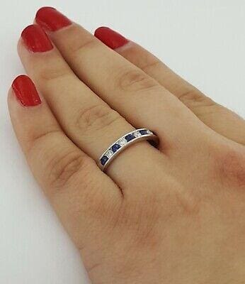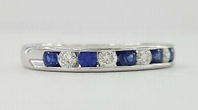 You are bidding on a 0.43 ct Total Weight Platinum Round Cut Diamonds & Marquise Cut Blue Sapphire Haft Circle Wedding Band / Ring.