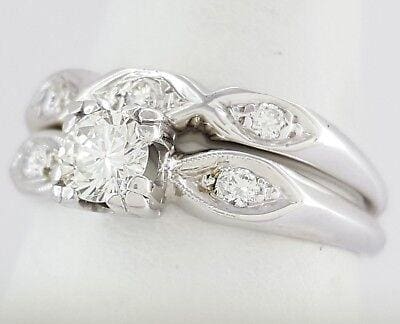 0.48 ct Vintage 14K Gold Round Cut Diamond Engagement / Wedding Band Ring Set