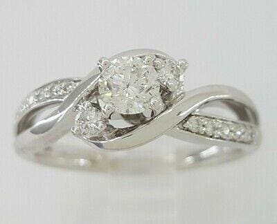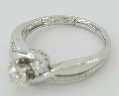 You are purchasing a 0.5 ct Total Weight 14K White Gold Round Brilliant Cut Diamond Twisted Engagement Ring. The ring weighs 3.5 grams, size 6.75, the center stone is a Natural Round Brilliant Cut diamond weighing approximately 0.32 ct, H-I in color, I1 in clarity. There are 14 Natural Round Brilliant Cut side diamonds weighing approximately 0.18 ct G-I color, I1 clarity. The engagement ring is stamped "14K 1F".