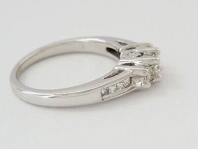 The ring weighs 2.9 grams, size 4.5, there are 11 Natural Princess Cut diamond weighing approximately 0.50 ct total weight, G-I in color, VS1-VS2 in clarity.