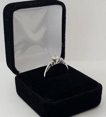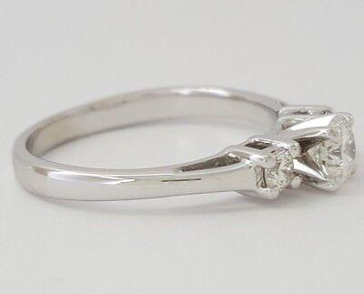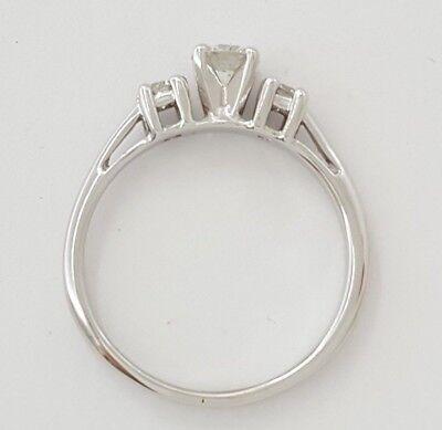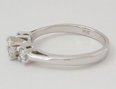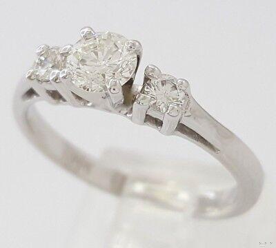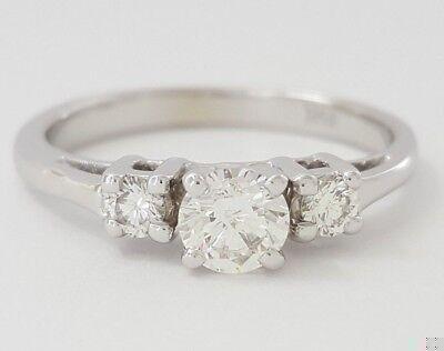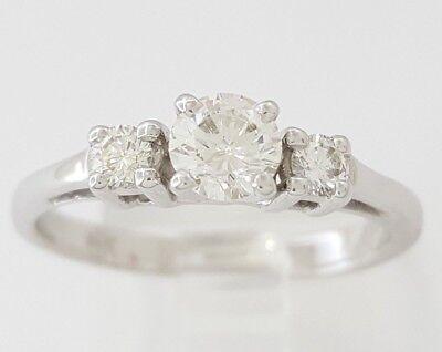 You are purchasing a 0.60 ct 14K White Gold Three-Stone Round Brilliant Cut Diamond Engagement/Anniversary Ring. The ring weighs 2.9 grams, size 7.5, the center stone is a Natural Round Brilliant Cut diamond weighing 0.45 ct, H-I in color, I1 in clarity. There are 2 Natural Round Brilliant Cut side diamonds weighing 0.15 ct, G-H in color, VS1-VS2 in clarity. The ring is stamped "14K."