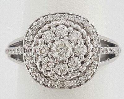 You are purchasing a 0.70 carat total weight 14k White Gold Round Brilliant Cut Diamond Cluster Ring.