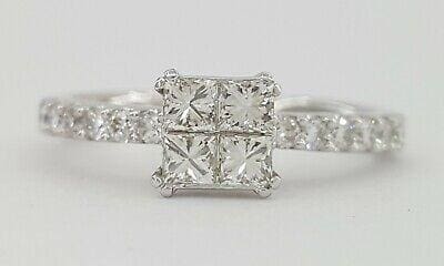 0.8 ct 18k Gold Invisible Set Princess & Round Cut Diamond Engagement Ring Size7
