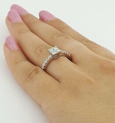 You are purchasing a 0.8 ct total weight 18k White Gold Invisible Set Princess & Round Cut Diamond Engagement Ring.
