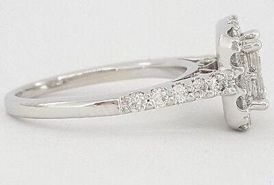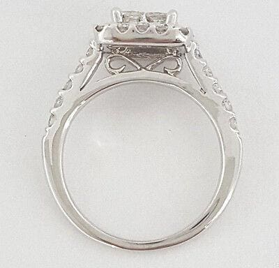 You are purchasing a 0.92 ct total weight 14K White Gold Invisible Princess Cut Diamond Engagement Halo Ring. The ring weighs 3.4 grams, size 4.5, the center is composed of 4 Natural Princess Cut diamonds weighing ~0.40 ct, H-I in color, SI1-SI2 in clarity. There are 26 Natural Round Brilliant Cut side Diamonds weighing approximately 0.52 ct, H-I in color, SI2-I1 in clarity. The ring is stamped "14K".