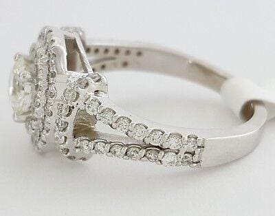 You are purchasing a 1.23 ct total weight 14K White Gold Round Brilliant Cut Diamond Double Halo Engagement Ring.