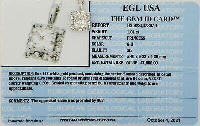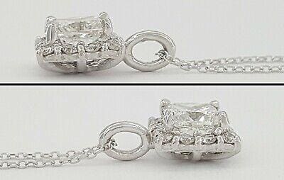 1.24 ct 14K White Gold Princess Cut Diamond Halo Pendant Necklace EGL Rtl 7,050