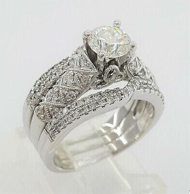 1.43 ct 14K Round Brilliant Cut Diamond Engagement Three Ring Set GIA Rtl 5,915
