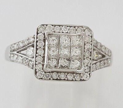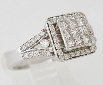 You are purchasing a 1 ct Total Weight 14k White Gold Invisible Set Princess Cut & Round Brilliant Cut Diamond Halo Ring.