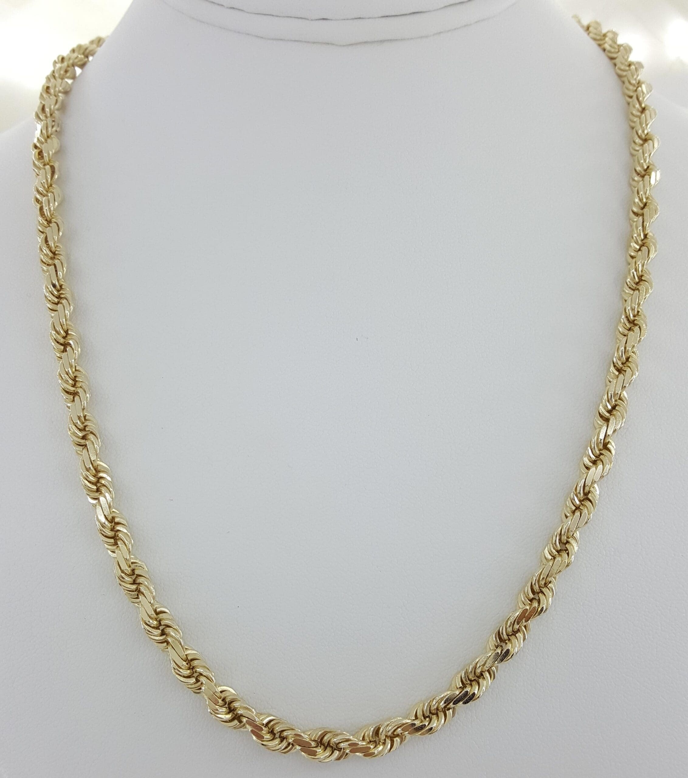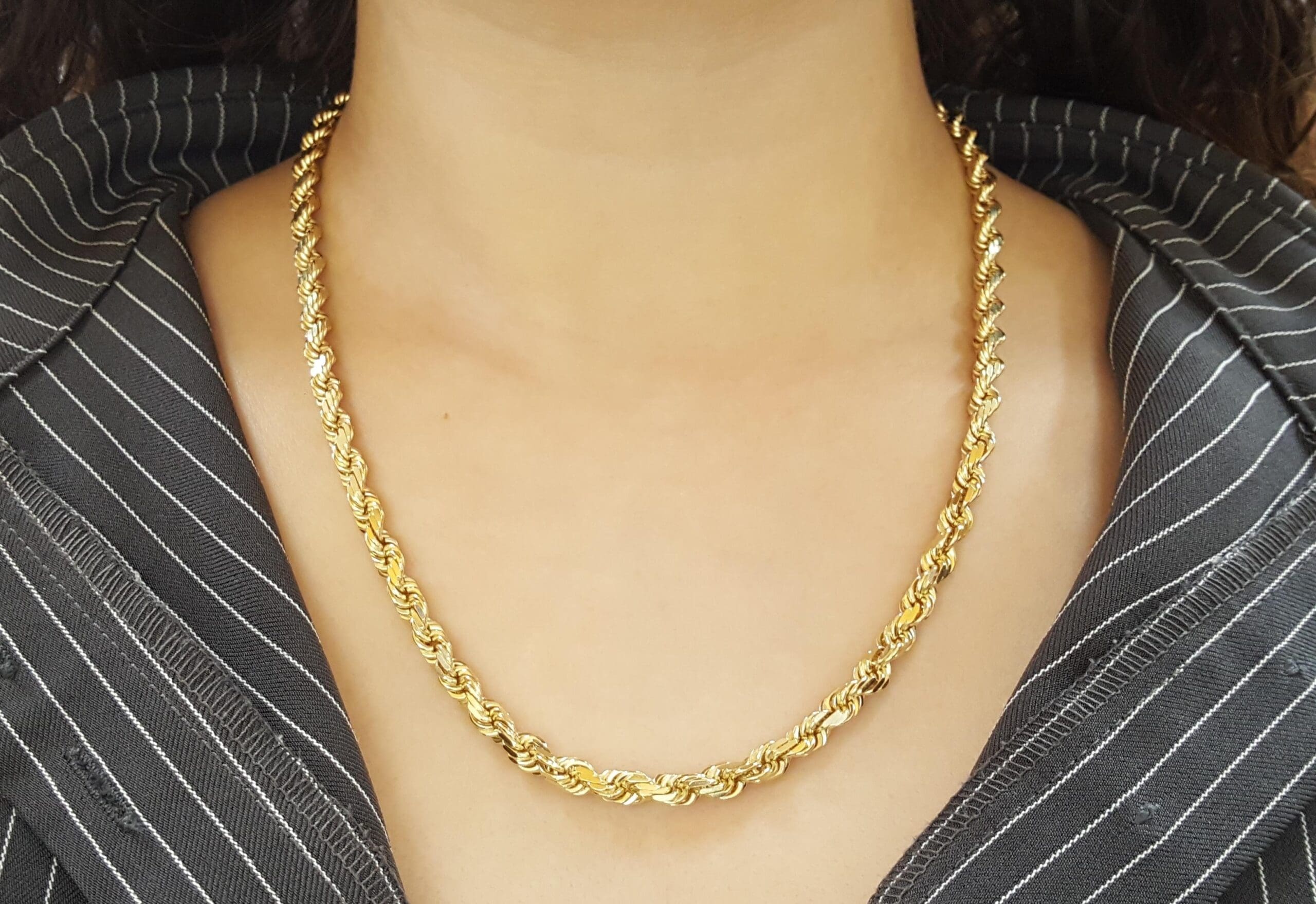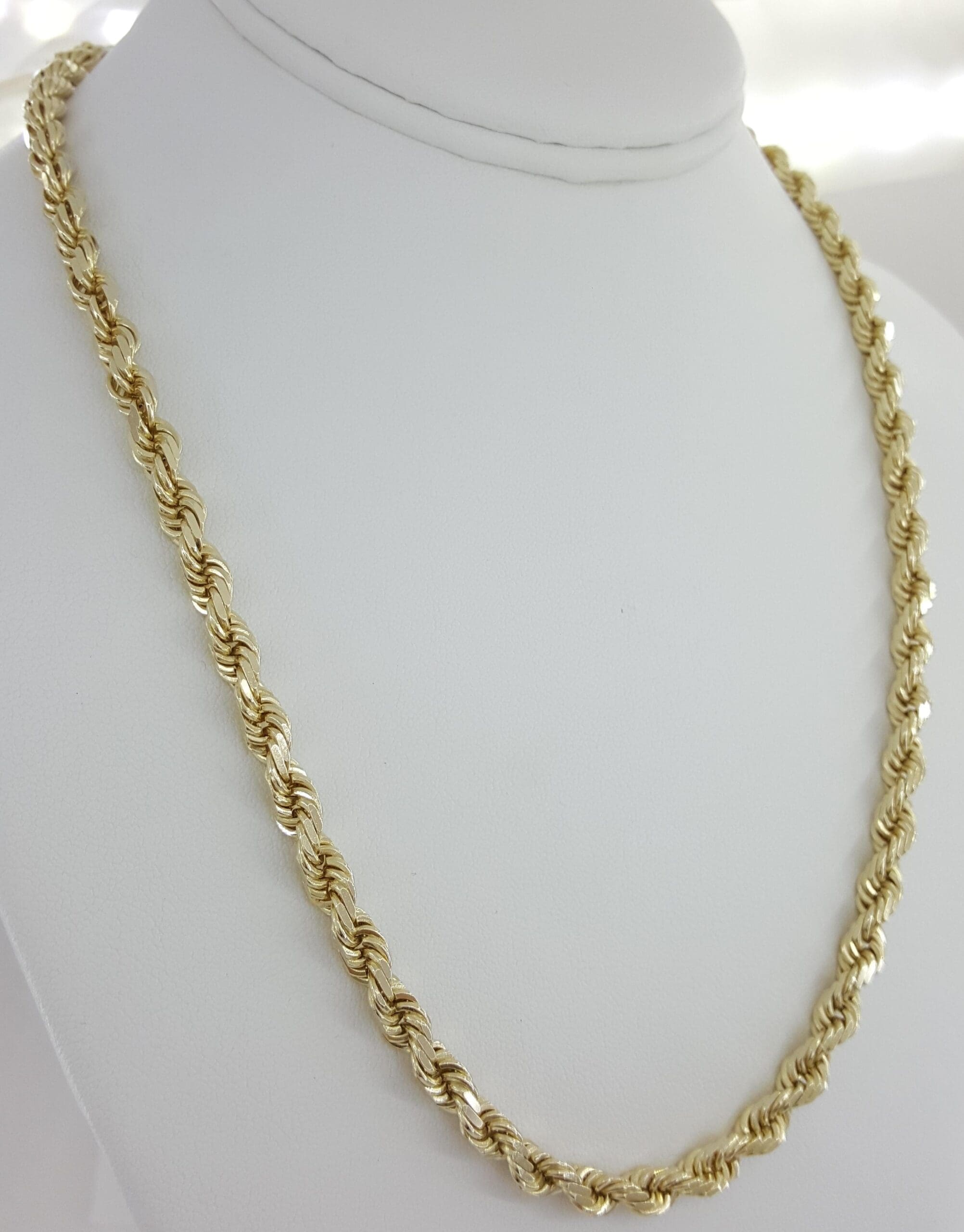 You are buying a 14K Yellow Gold Diamond Cut Rope Chain Necklace.