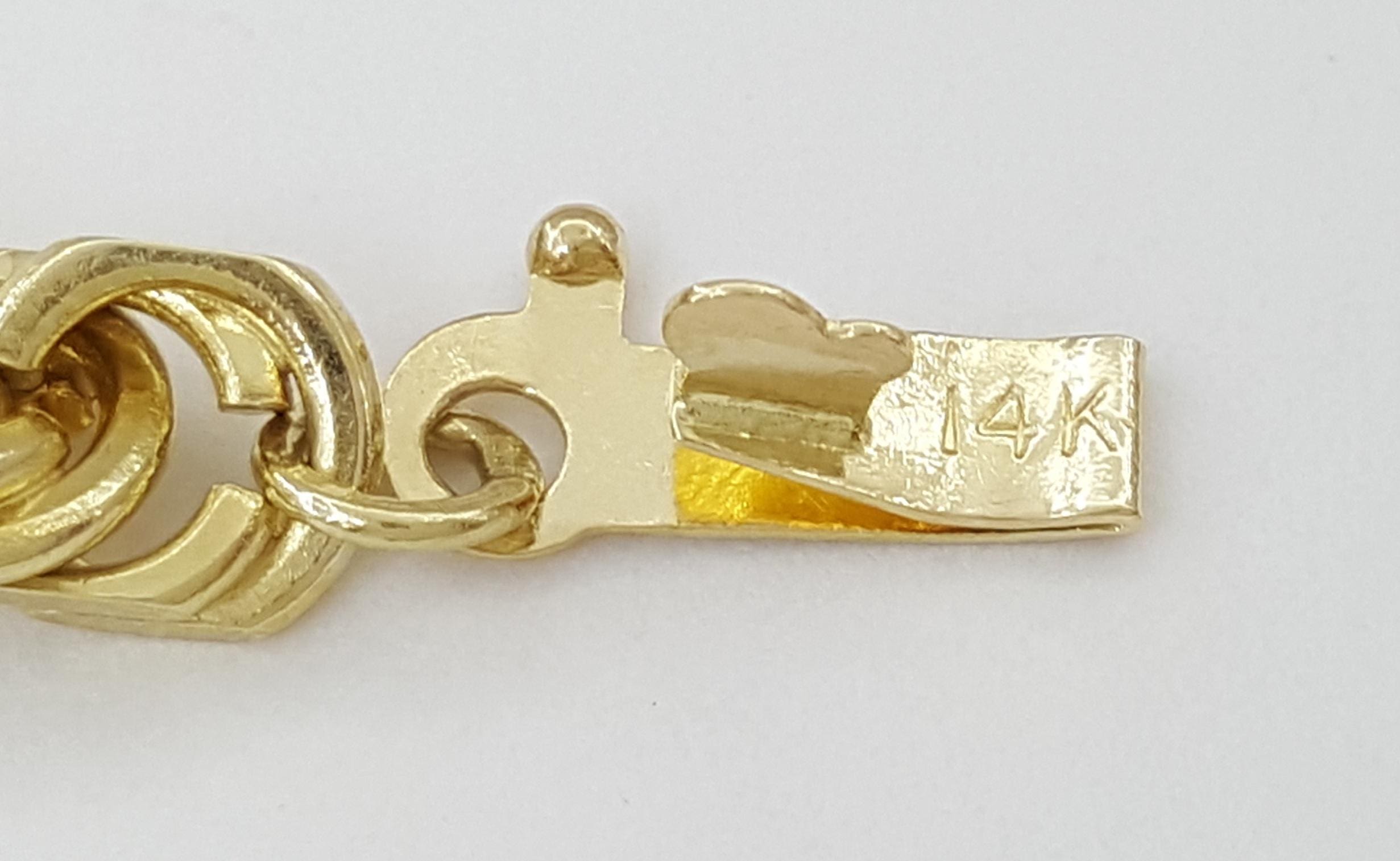 The necklace weighs 52 grams of Solid 14k yellow gold, 20" long, ~5.5mm thick.