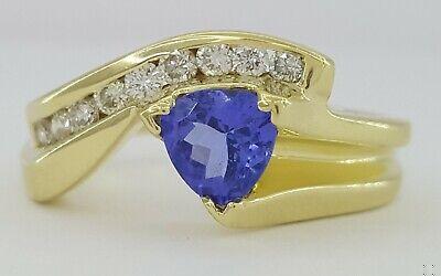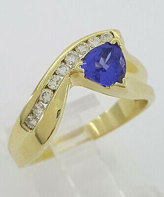 You are purchasing a 18K Yellow Gold ~ 0.77 ct Trillion Shaped Tanzanite & Round Brilliant Cut Diamond Ring.
