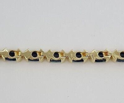 You are purchasing a 14K Yellow Gold 19 ct total weight Oval Cut Blue Sapphire Tennis Bracelet.