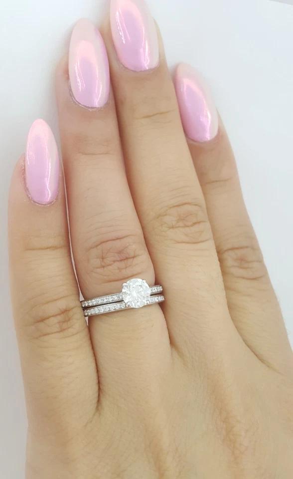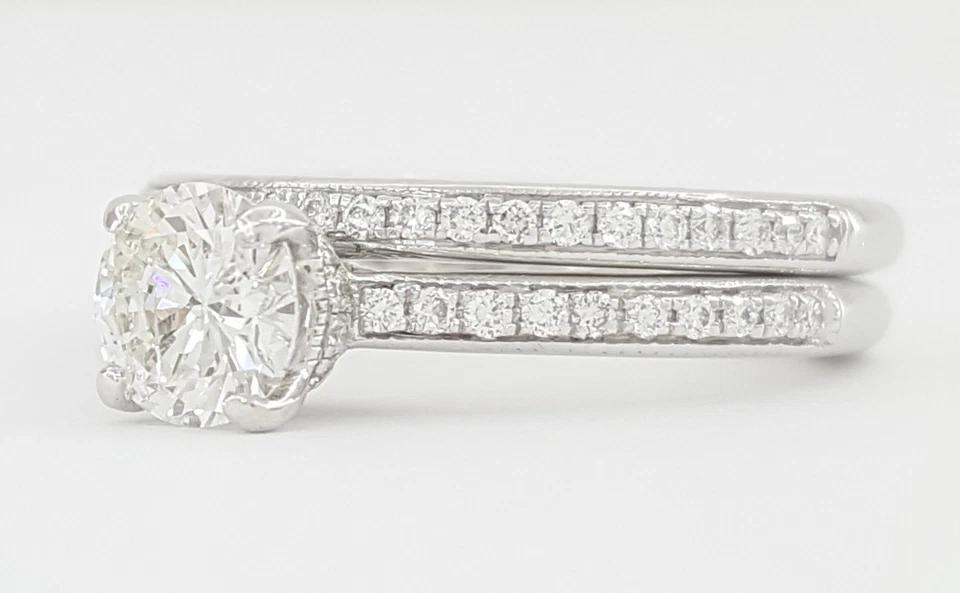 You are Purchasing a A.Jaffe 1.04 ct Round Diamond Hidden Halo Engagement Ring & Wedding Band Set in 14k White Gold.