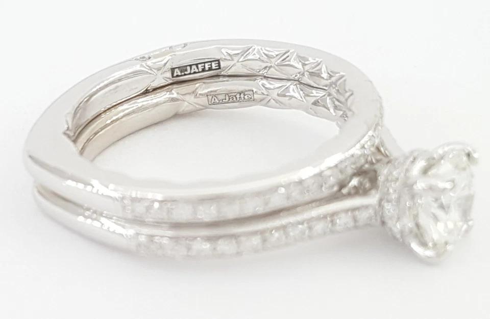 A.Jaffe Round Diamond Hidden Halo Engagement Ring Set 1.04 ct 14k Gold Rtl $10k