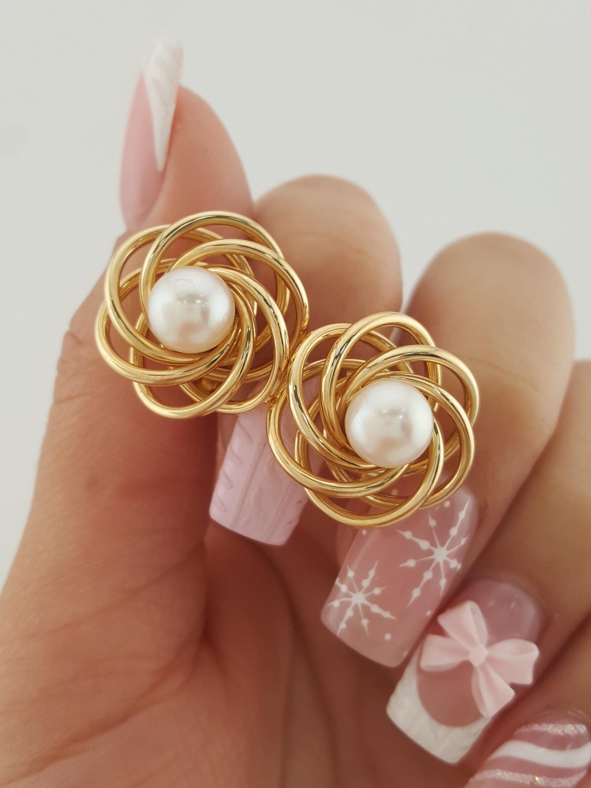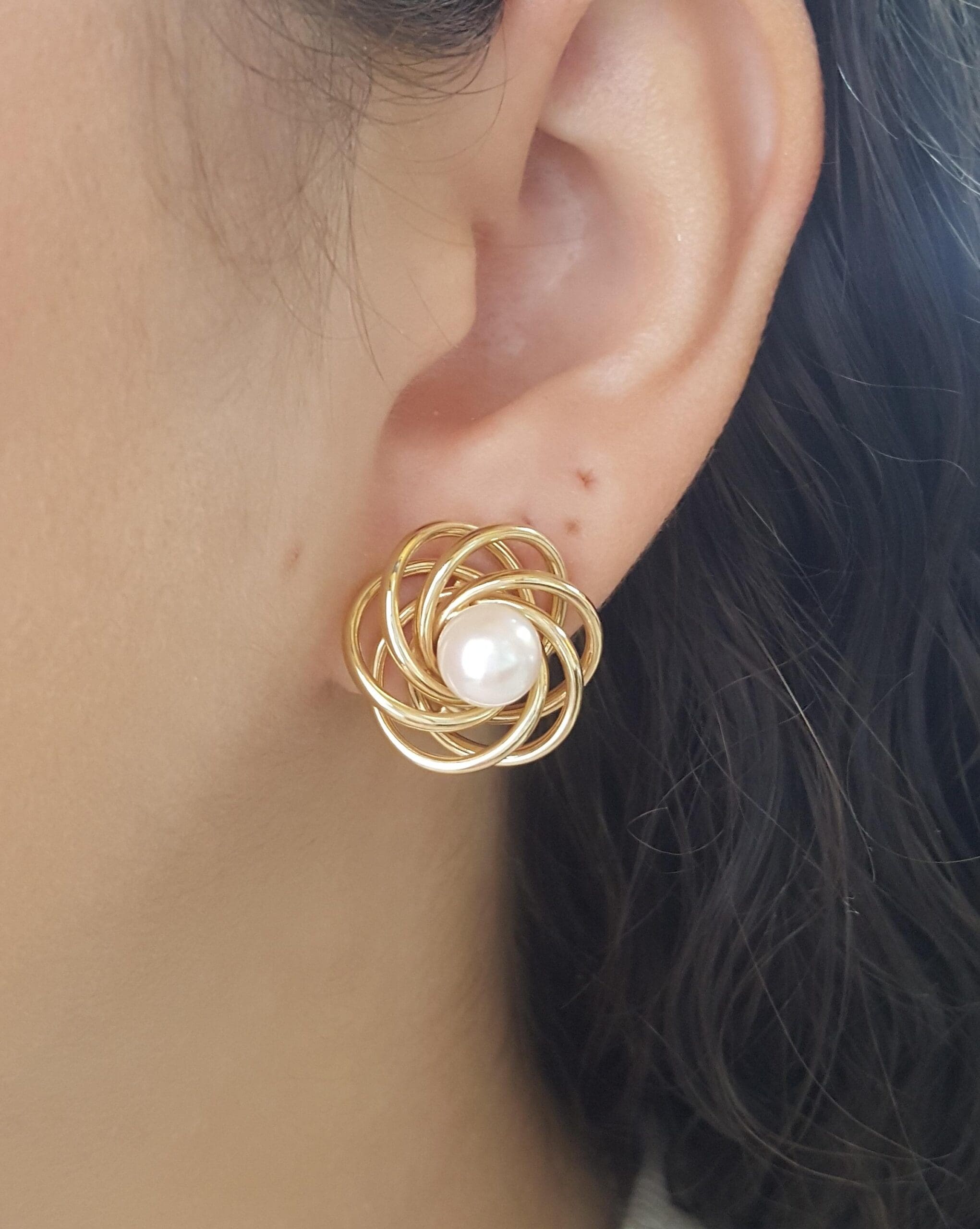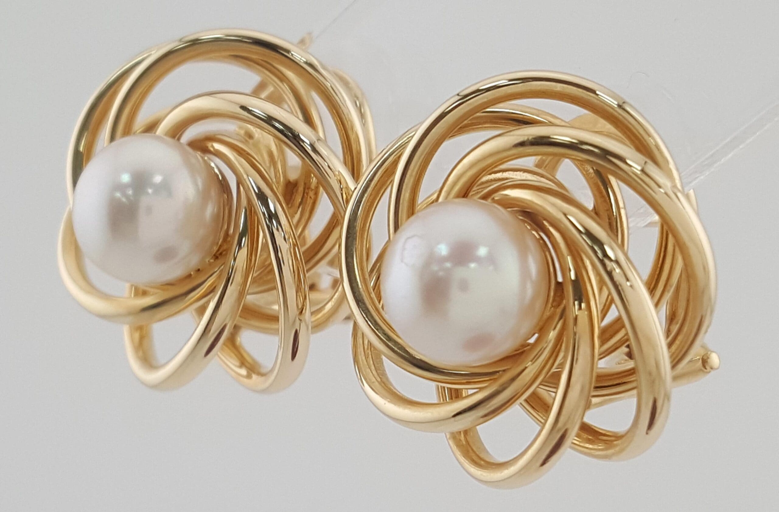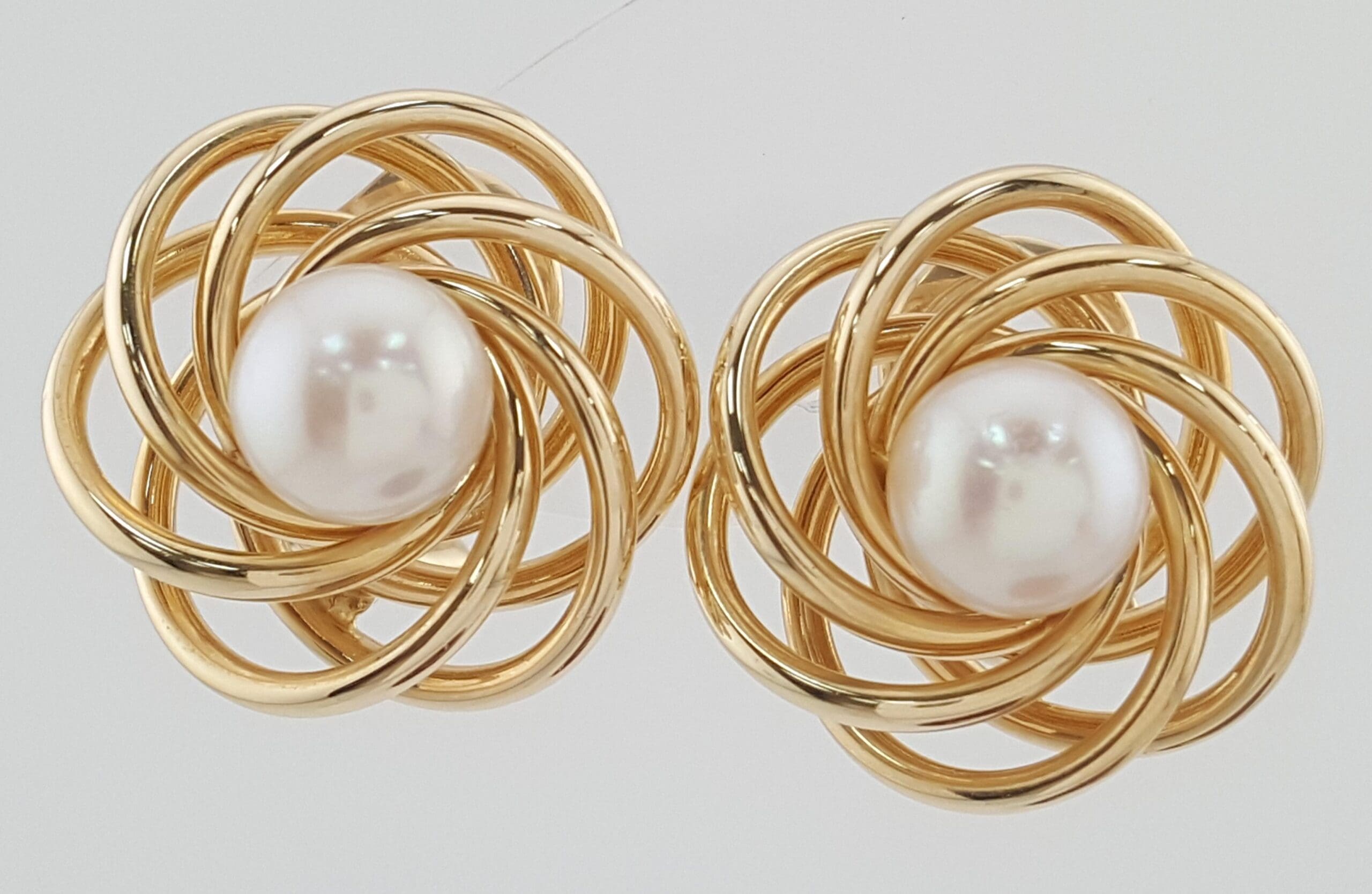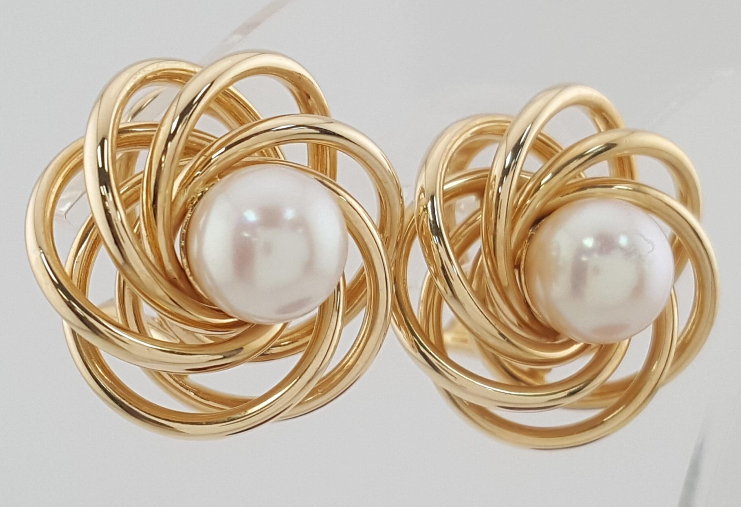 You are Purchasing a Pair of Akoya Pearl 14k Yellow Gold Spiral Omega Back Earrings