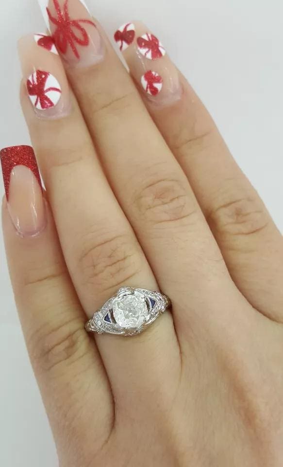 Be the first to review “Antique Edwardian / Art Deco Old Mine Cut Diamond Engagement Ring 1.38 ct Plat”