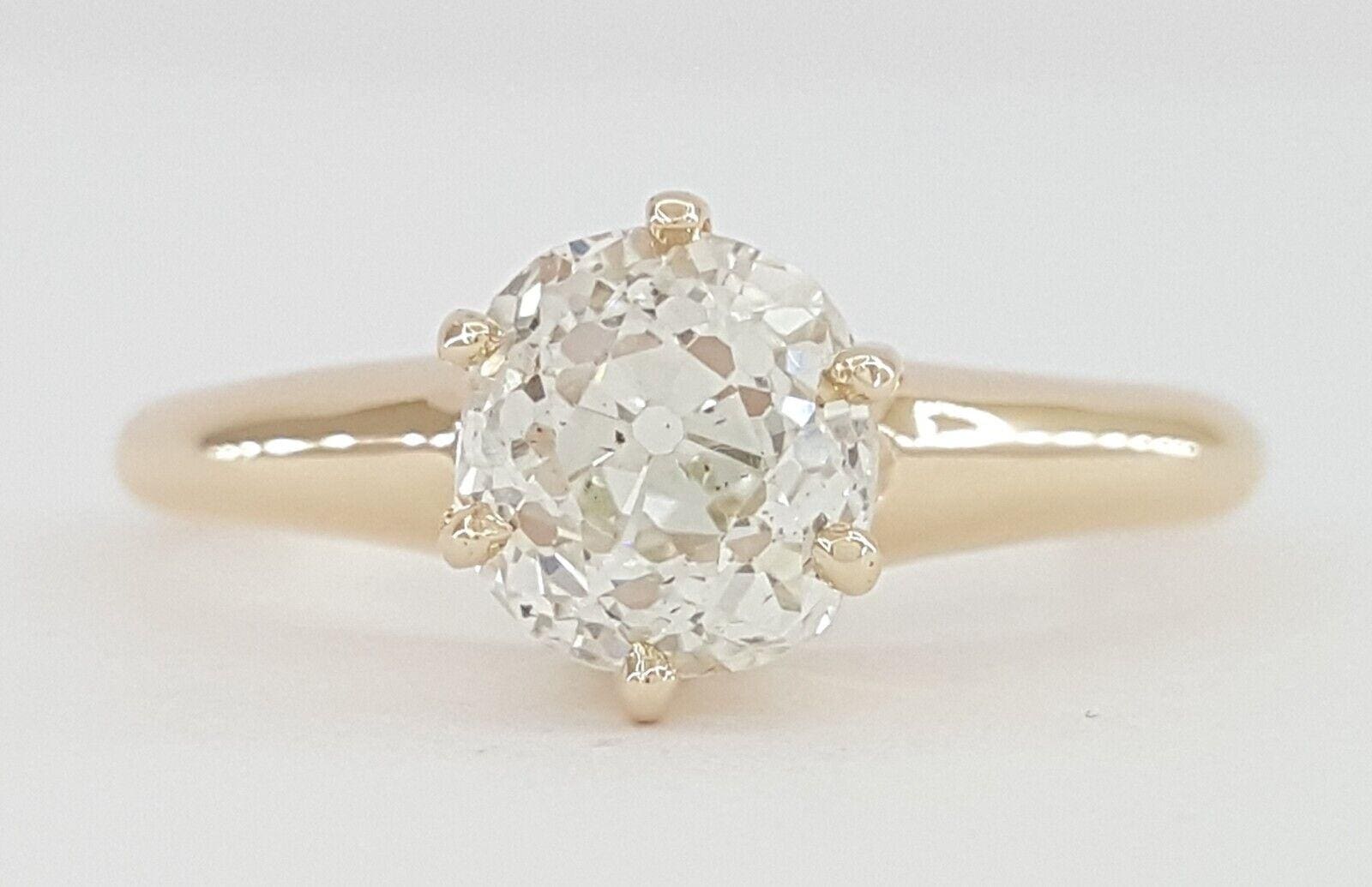 Antique Victorian Old Mine Cut Diamond Solitaire Engagement Ring 1.36 ct 14k GIA