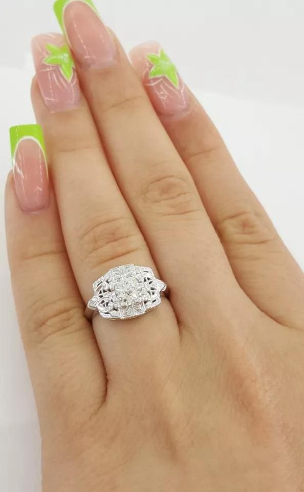 You are purchasing a 0.55 ct Art Deco Bluebird 14K White Gold Old European Cut Diamond Solitaire Engagement Ring.