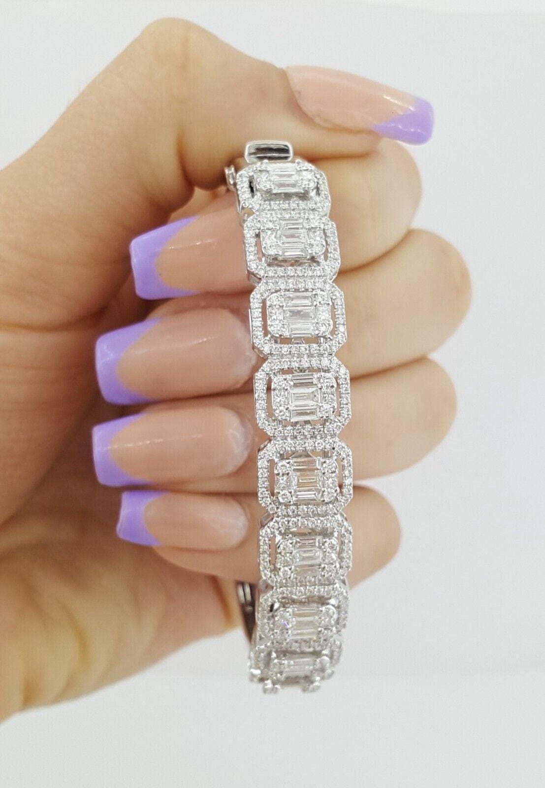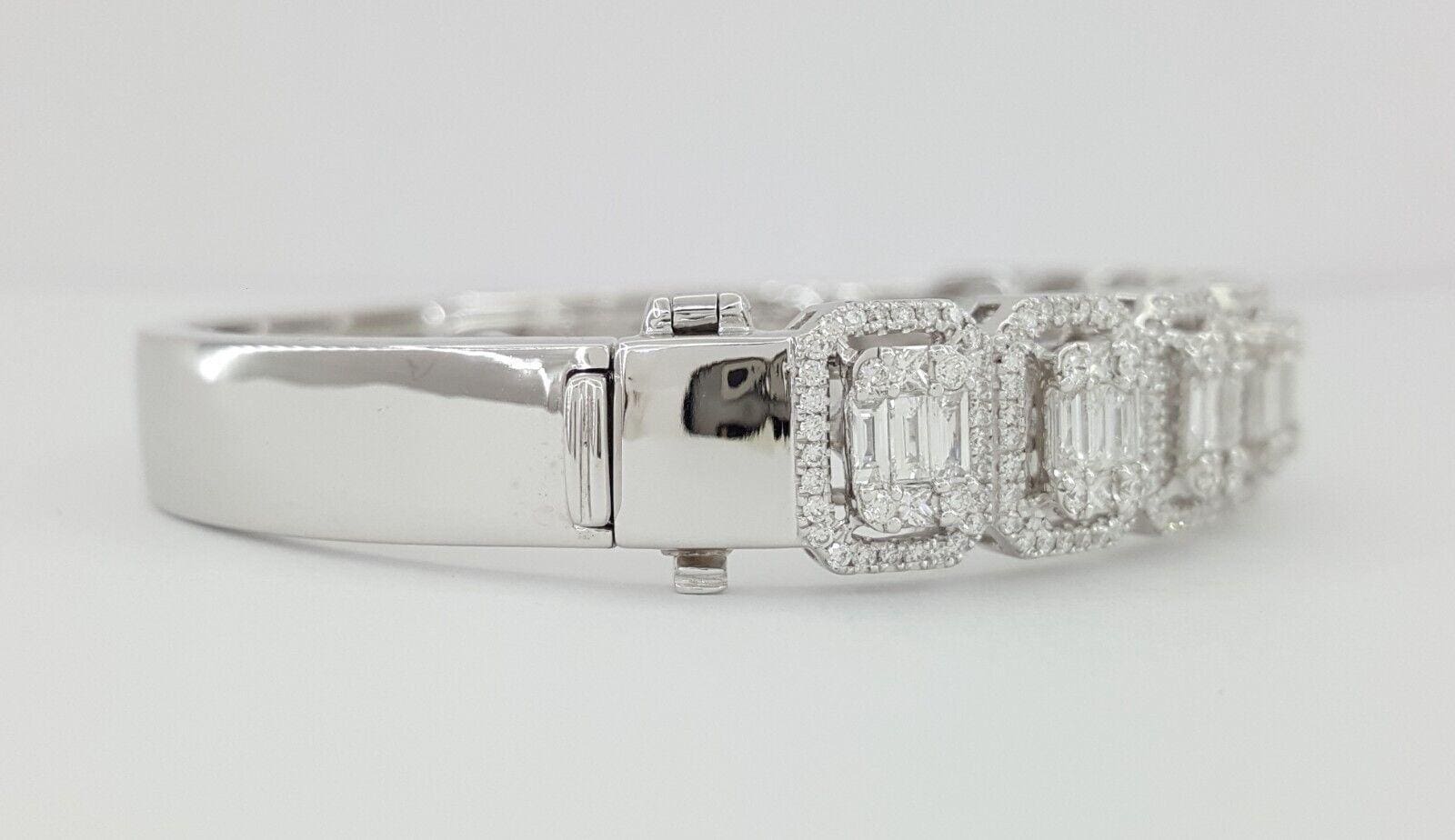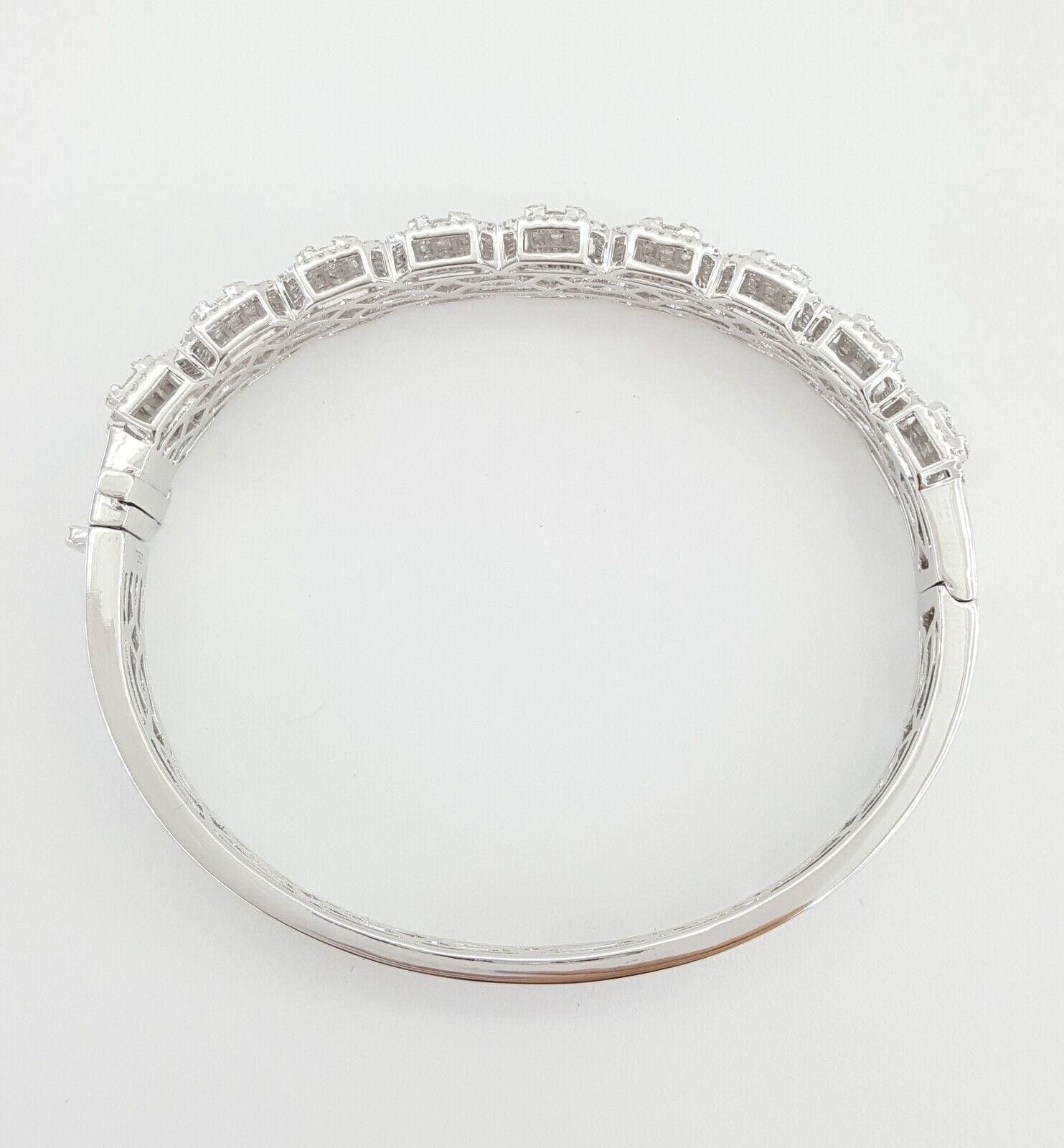You are purchasing a 3.3 ct total weight Baguette, Round, & Princess Cut Diamond Bangle / Bracelet in 18K White Gold 6.5".