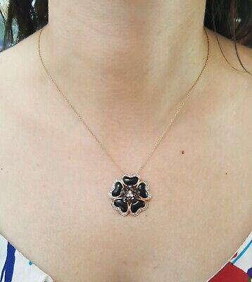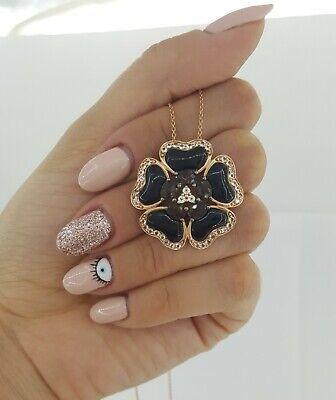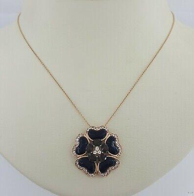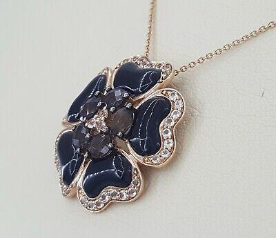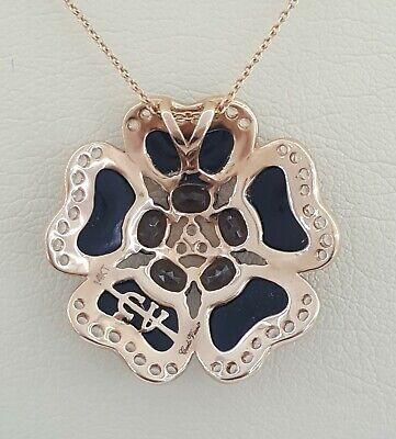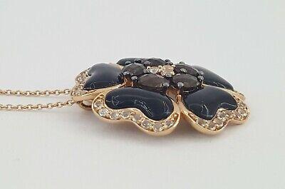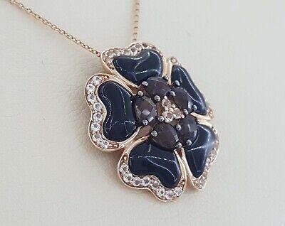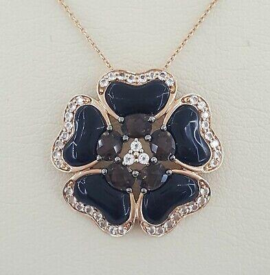 You are buying a Carlo Viani Le Vian 14K Rose Gold With Oval Smoky Quartz, White Topaz, & Onyx Flower Pendant / Necklace 18".