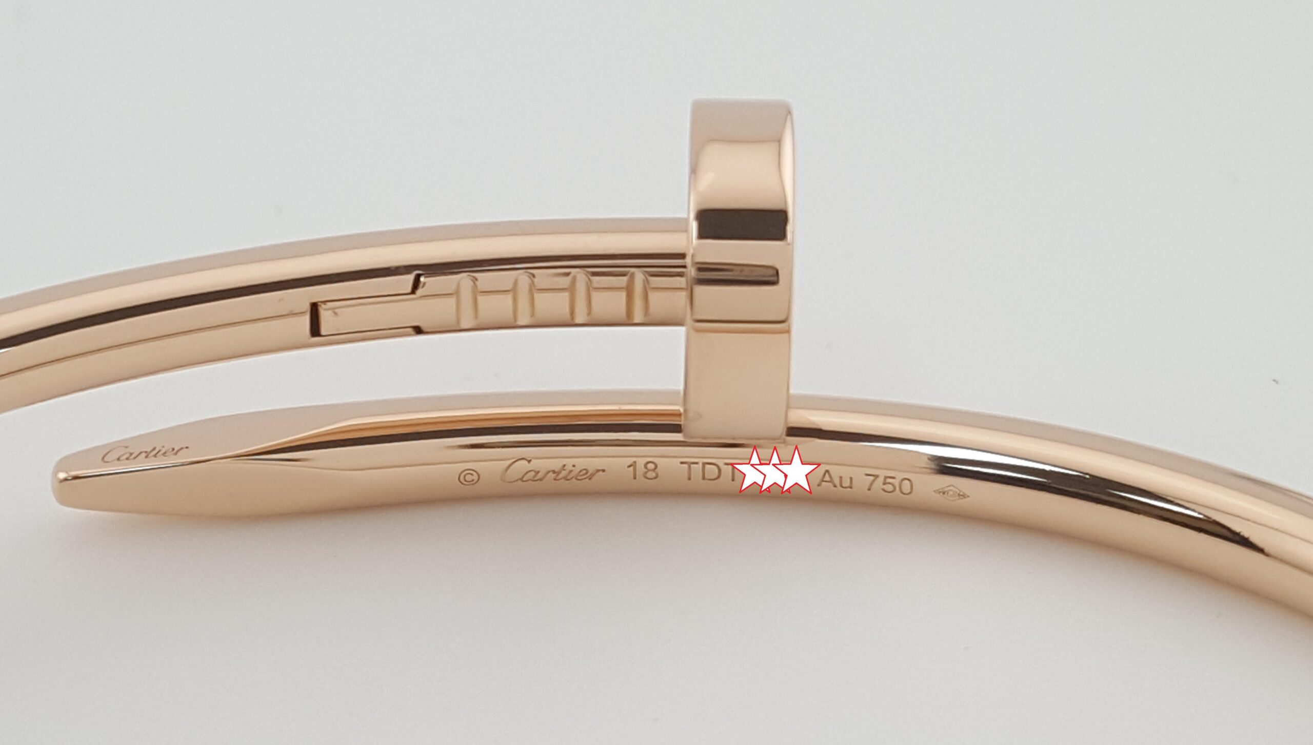 The Bracelet weighs 34 grams of solid 18K Rose Gold, 3.5 mm wide, Size 18 (7.3”), 62.6x50.4mm inner Diameter, is stamped "© Cartier 18 TDT*** AU750".