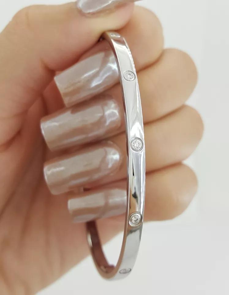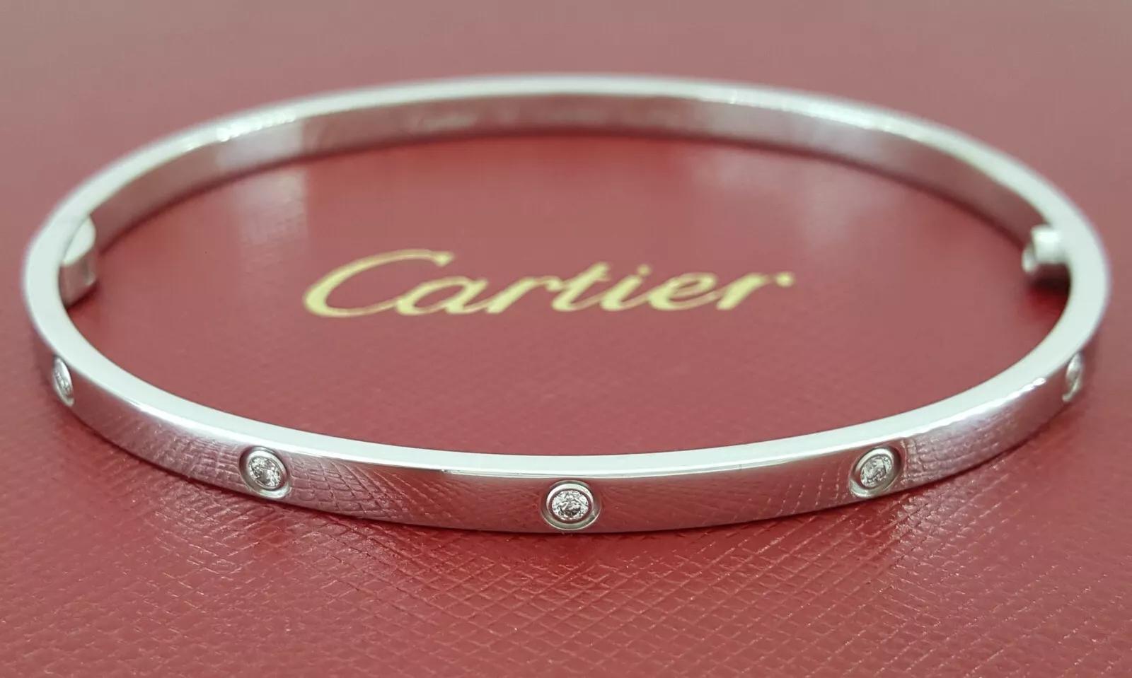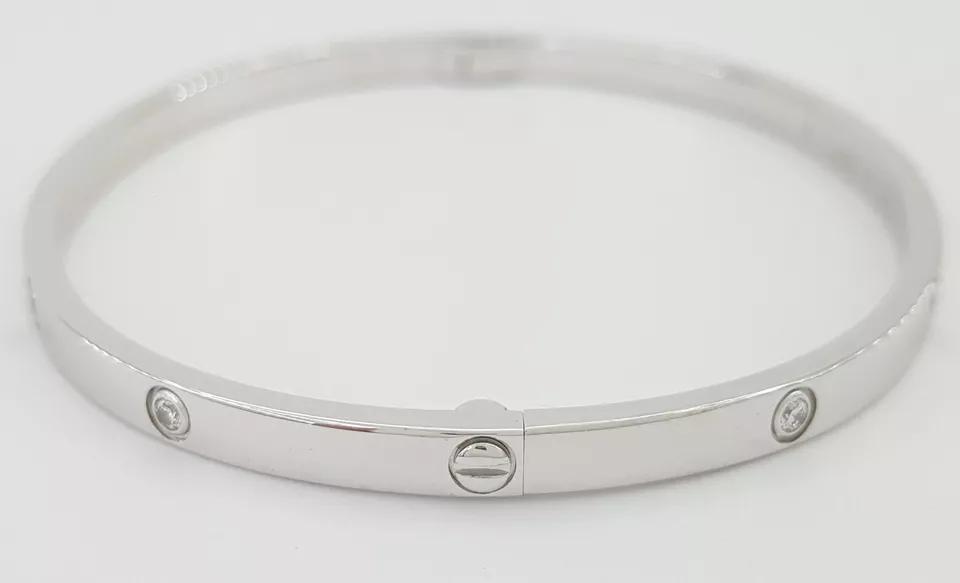 You are Purchasing a Cartier Love Small 18K White Gold 0.21 ct Round Brilliant Cut 10 Diamond Bracelet 3.7mm Wide Size 18.