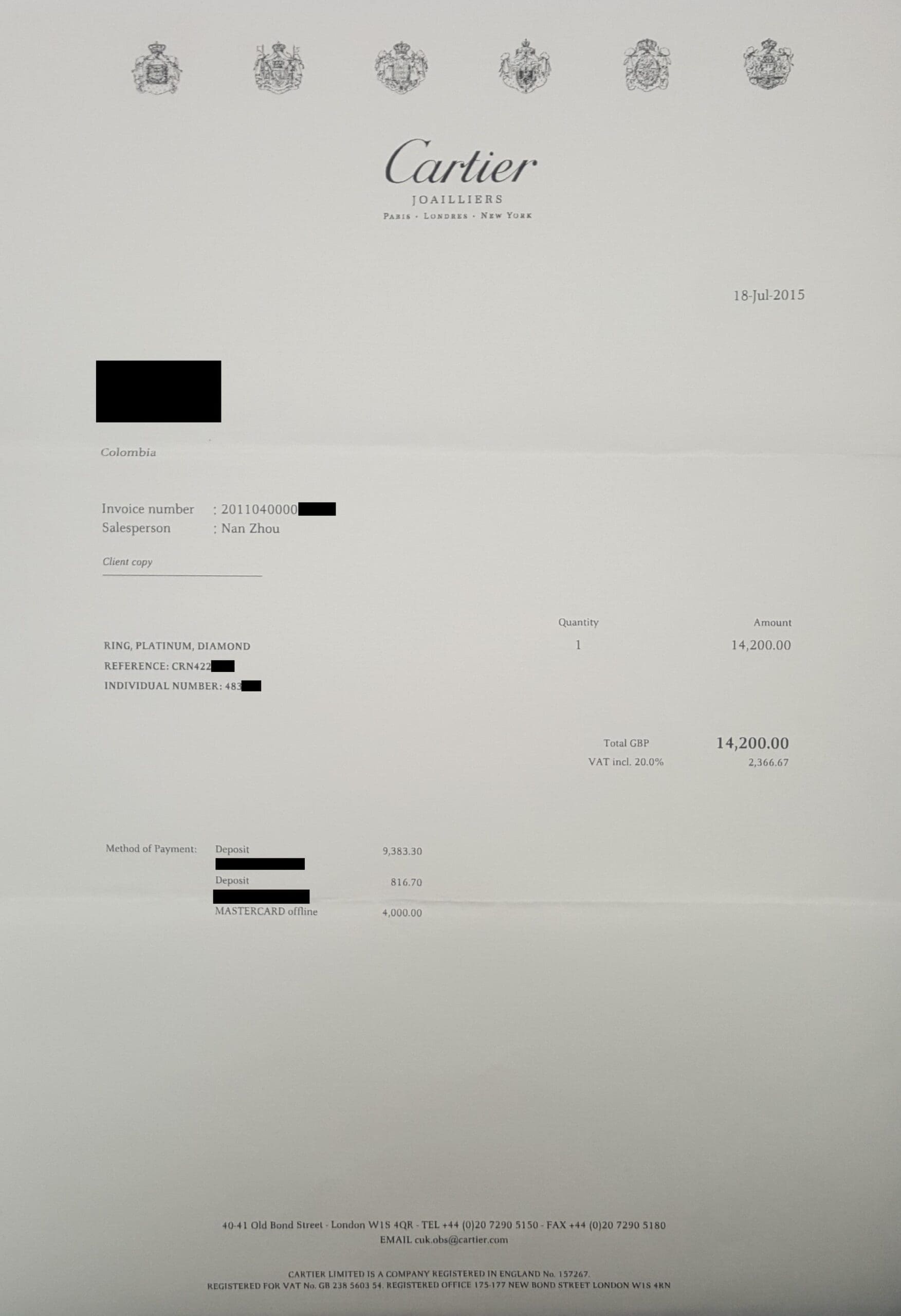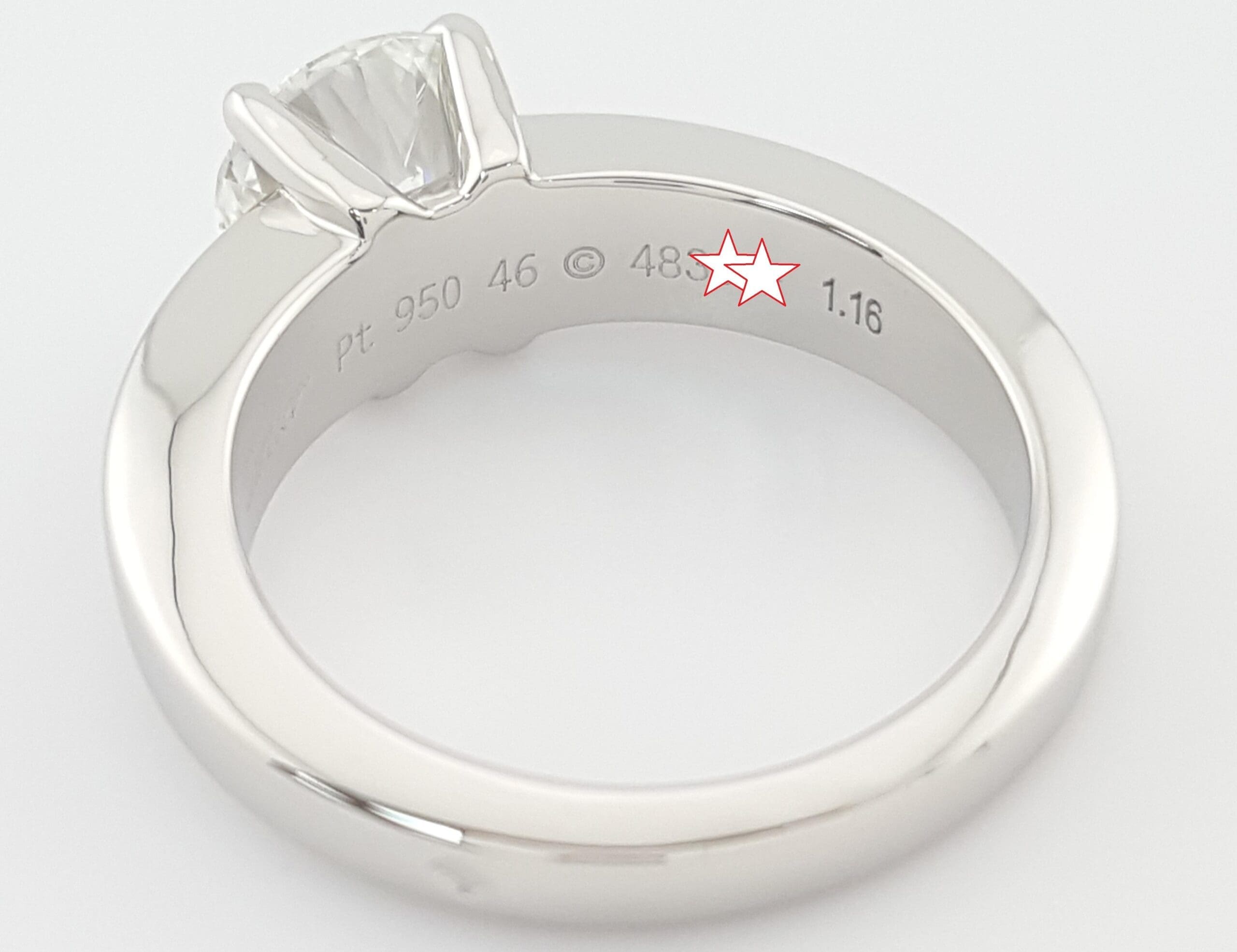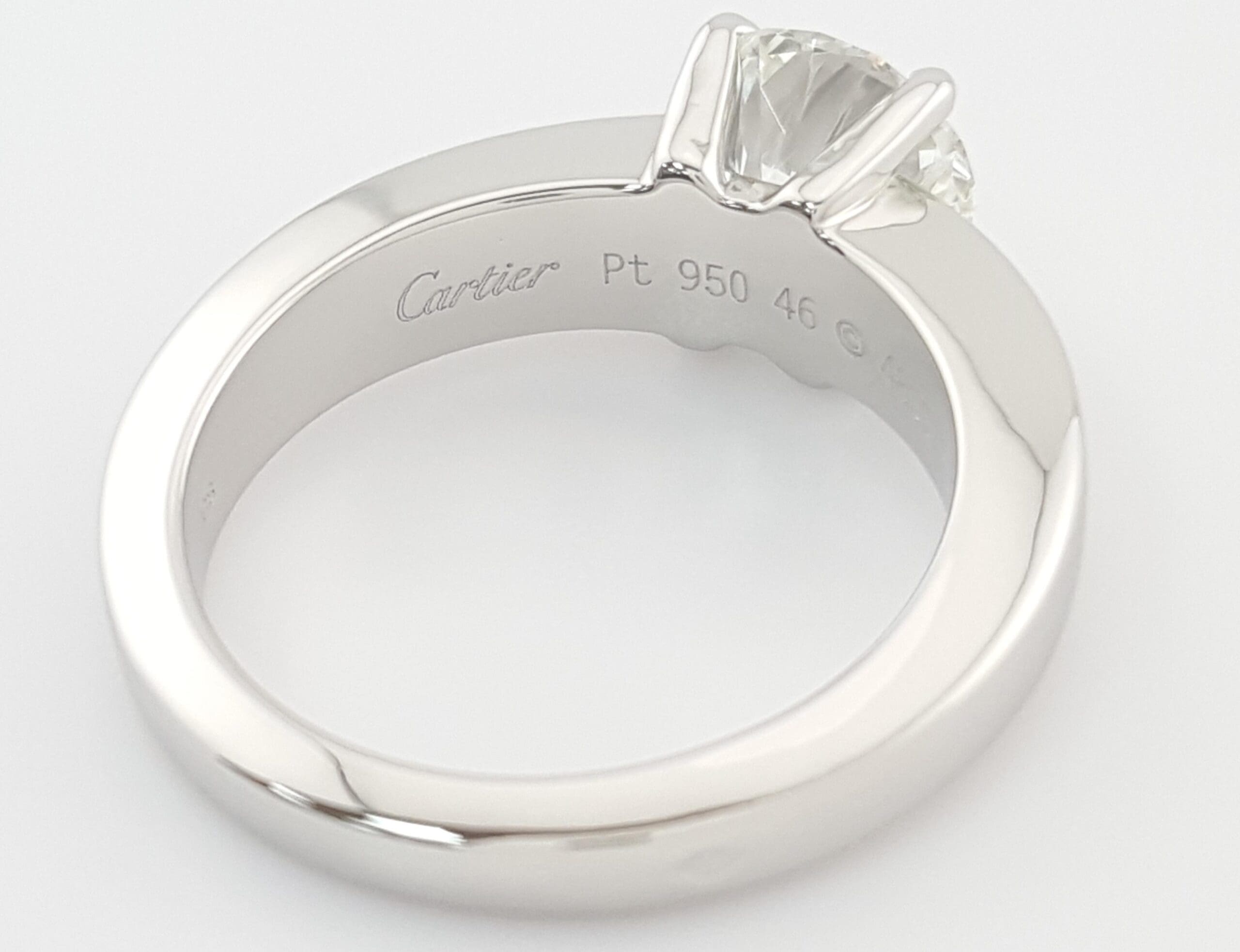 The ring is stamped "Cartier PT950 46 © 483*** 1.16".
