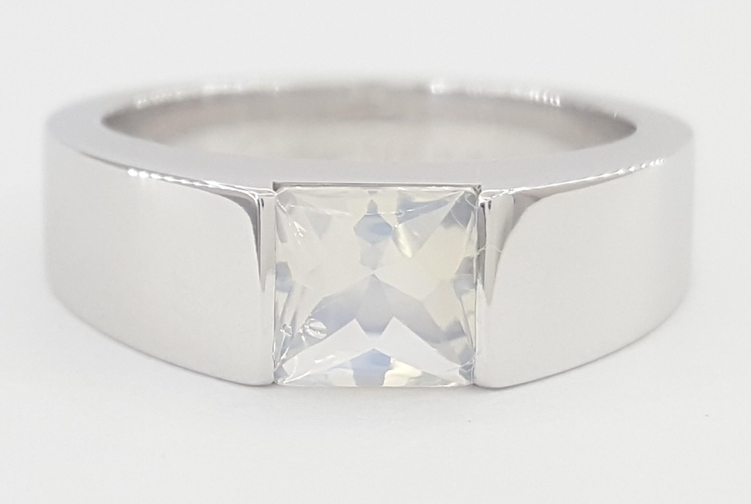 Cartier Tank Moonstone Ring 18k White Gold 5.8 mm Size 53 US 6.5