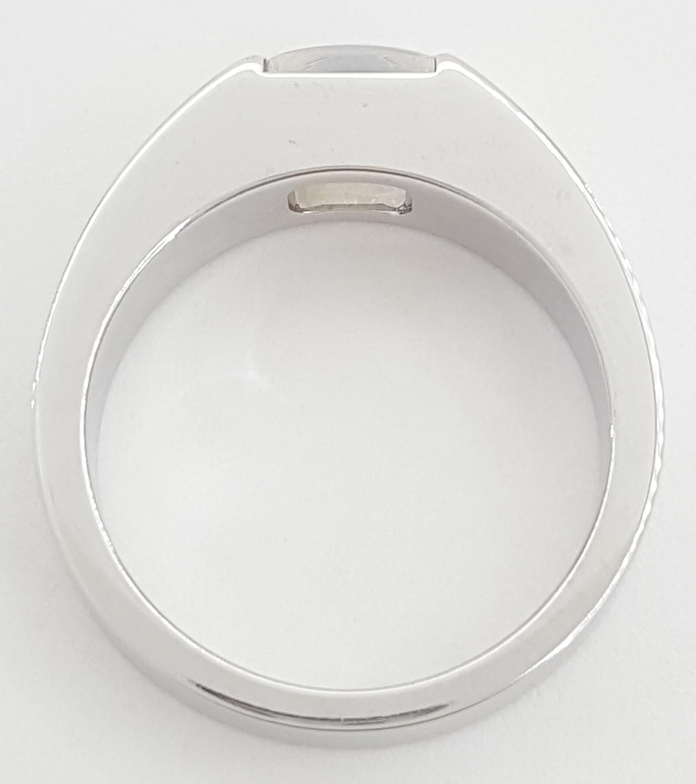 The Ring weighs 10.5 grams of solid 18K White Gold, 5.8 mm wide, Size 53 French or 6.5 US.
