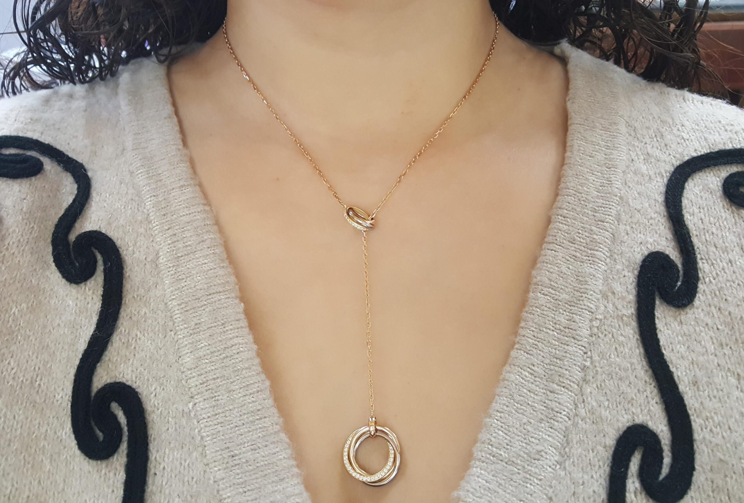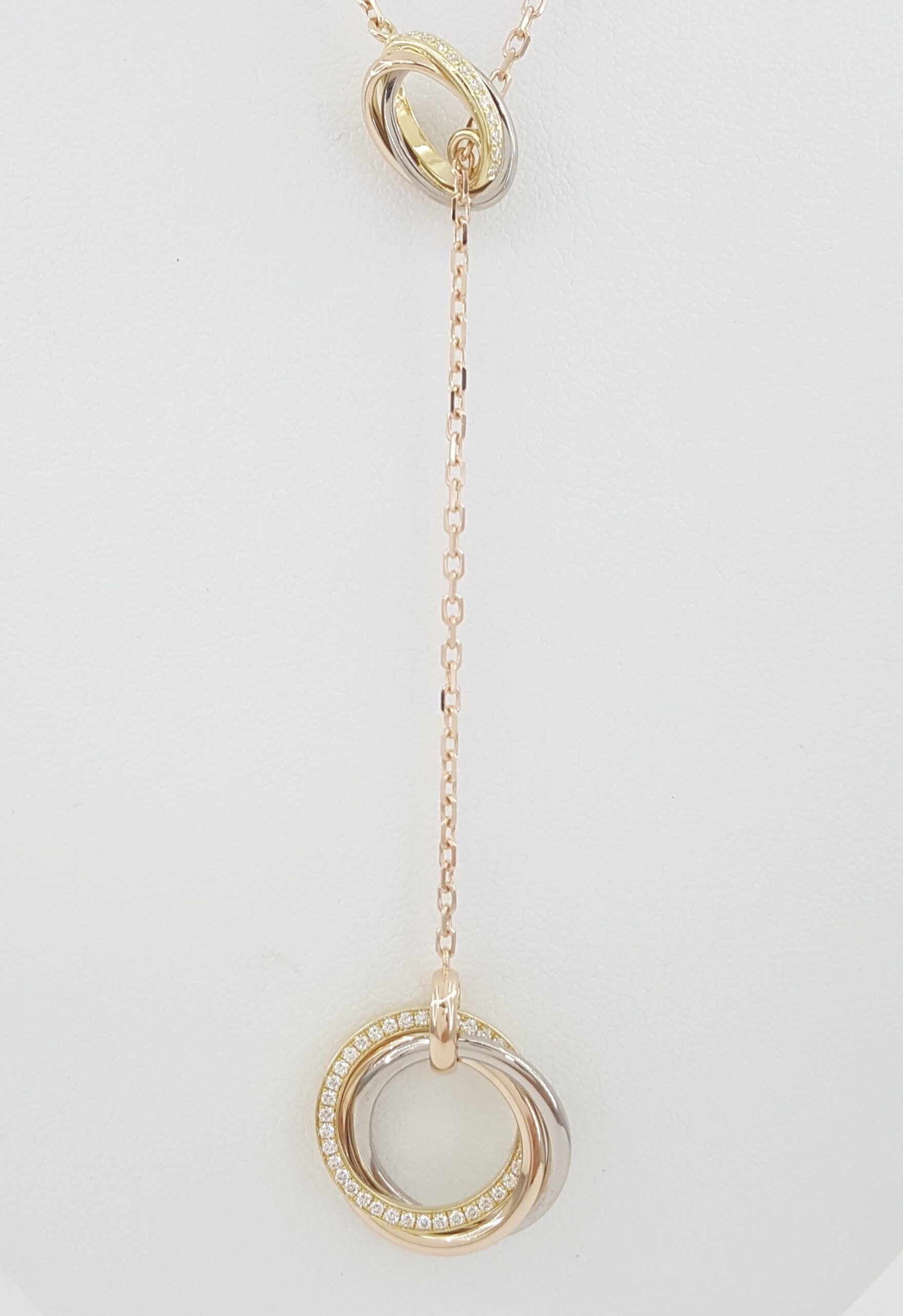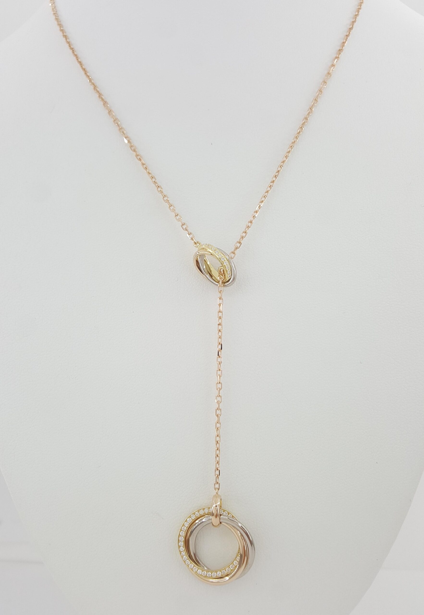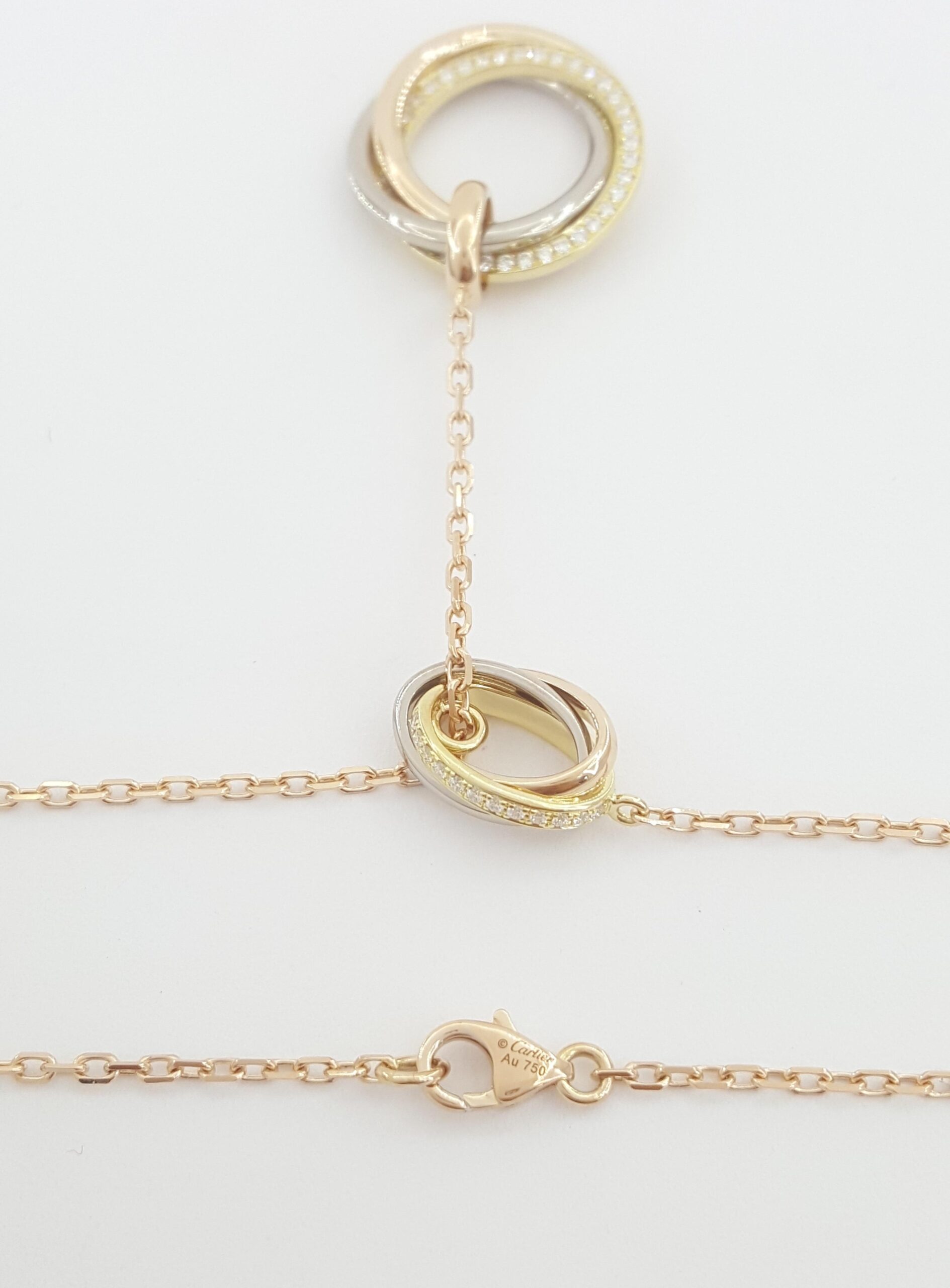 You are Purchasing a Cartier Trinity 18k Multi-Colored Gold Pave Diamond Necklace
