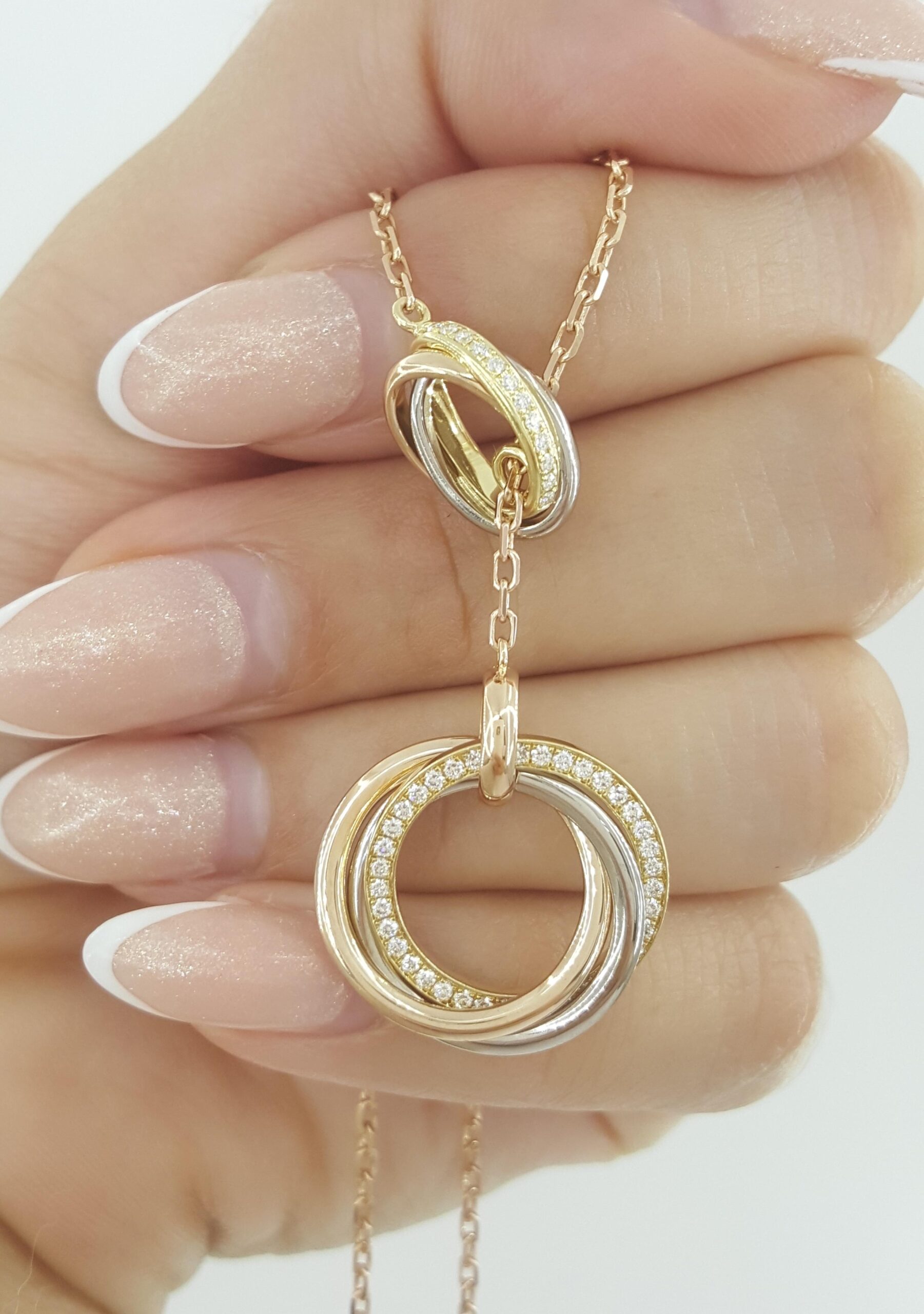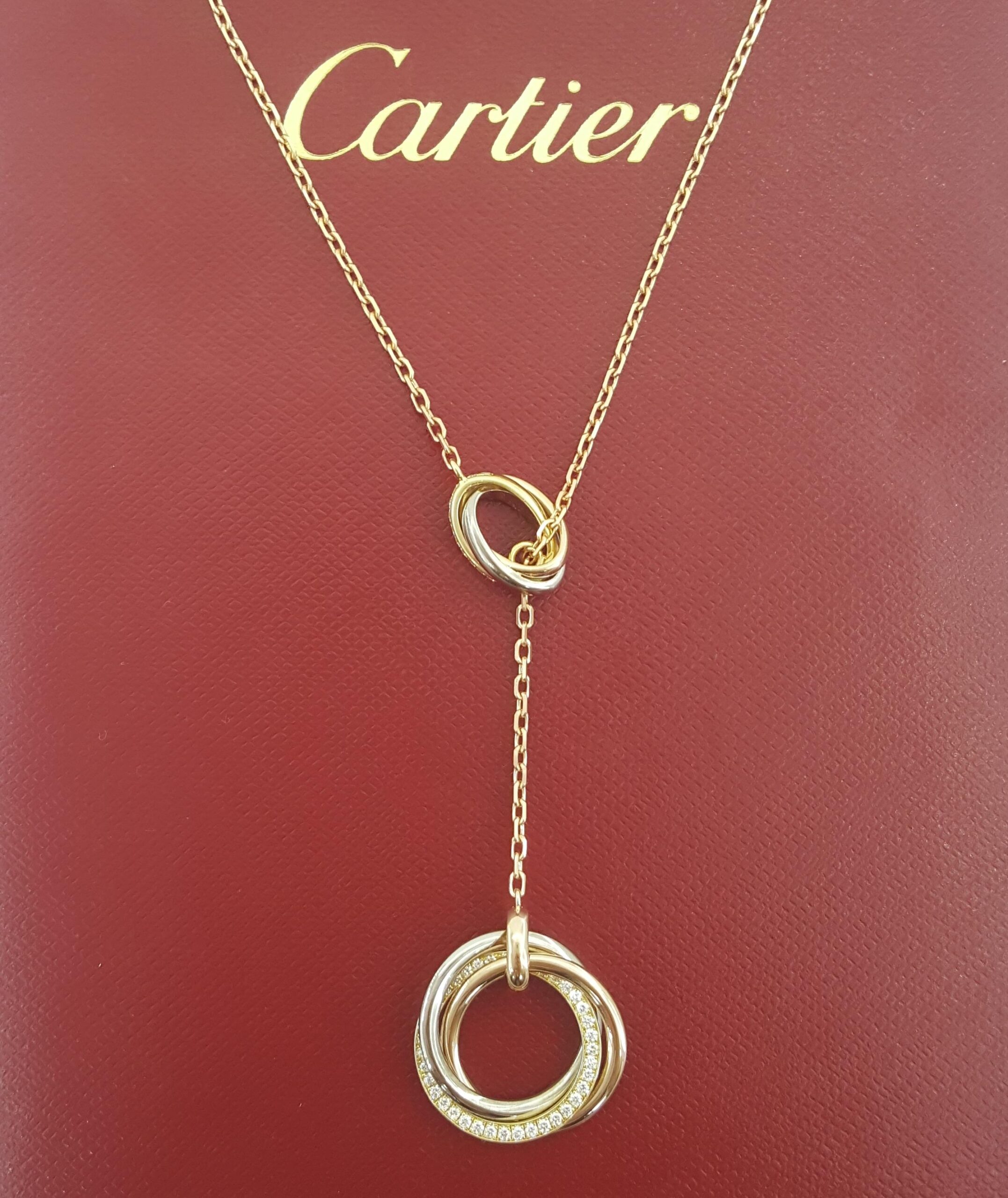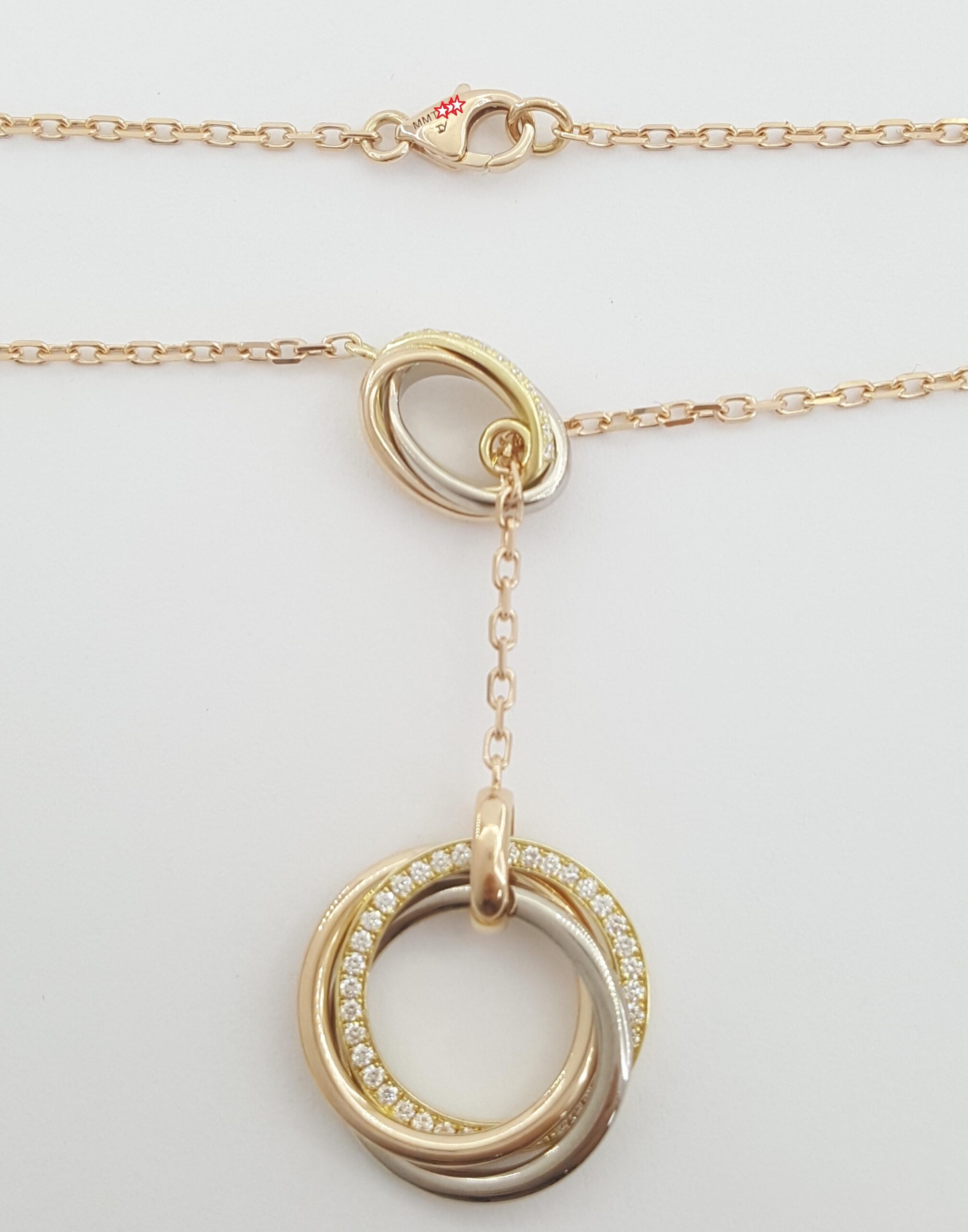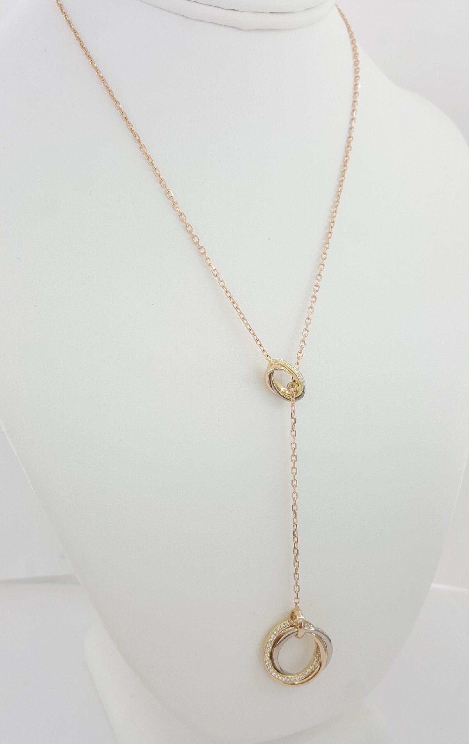 You are Purchasing a Cartier Trinity 18k Multi-Colored Gold Pave Diamond Necklace