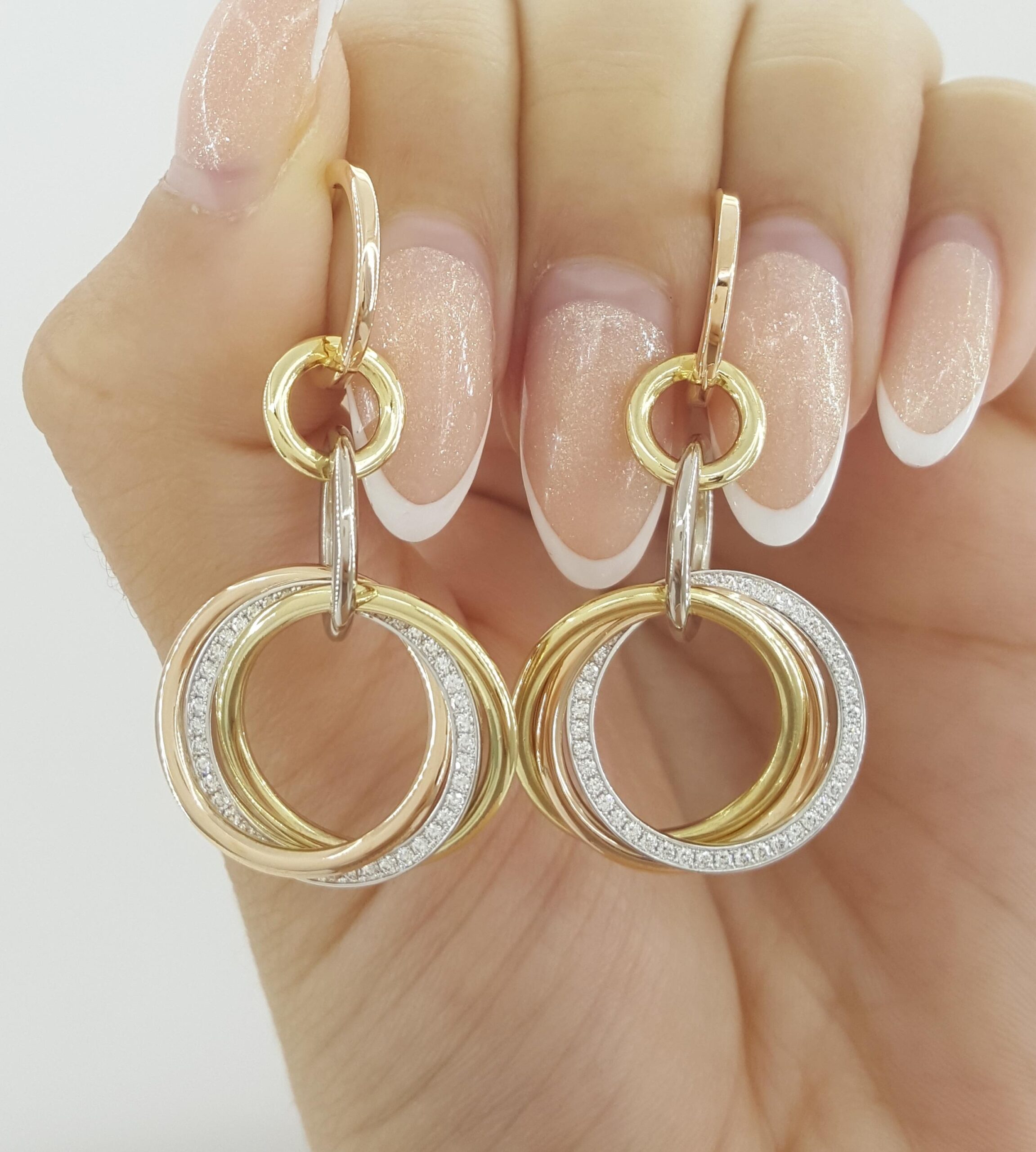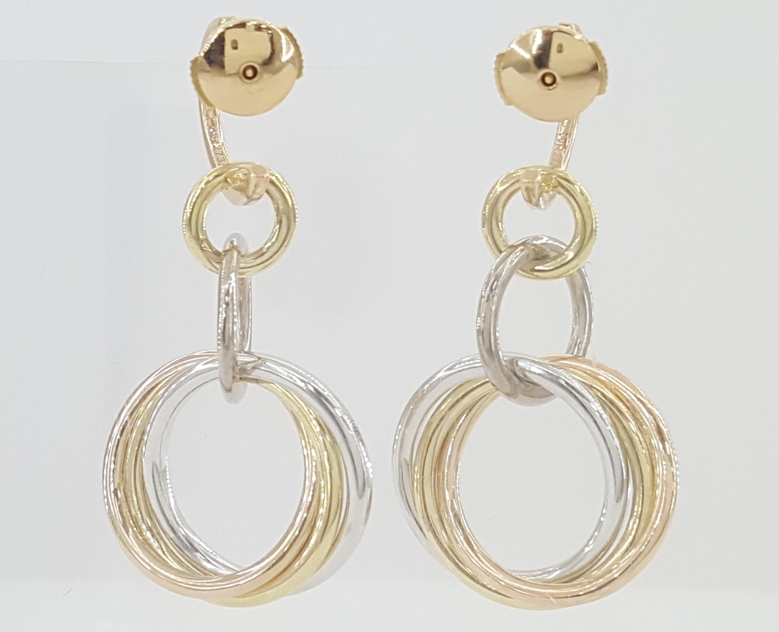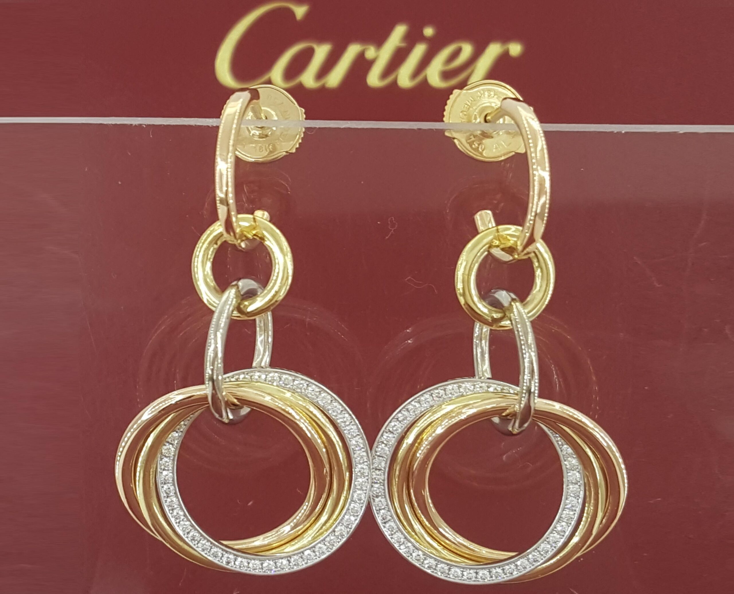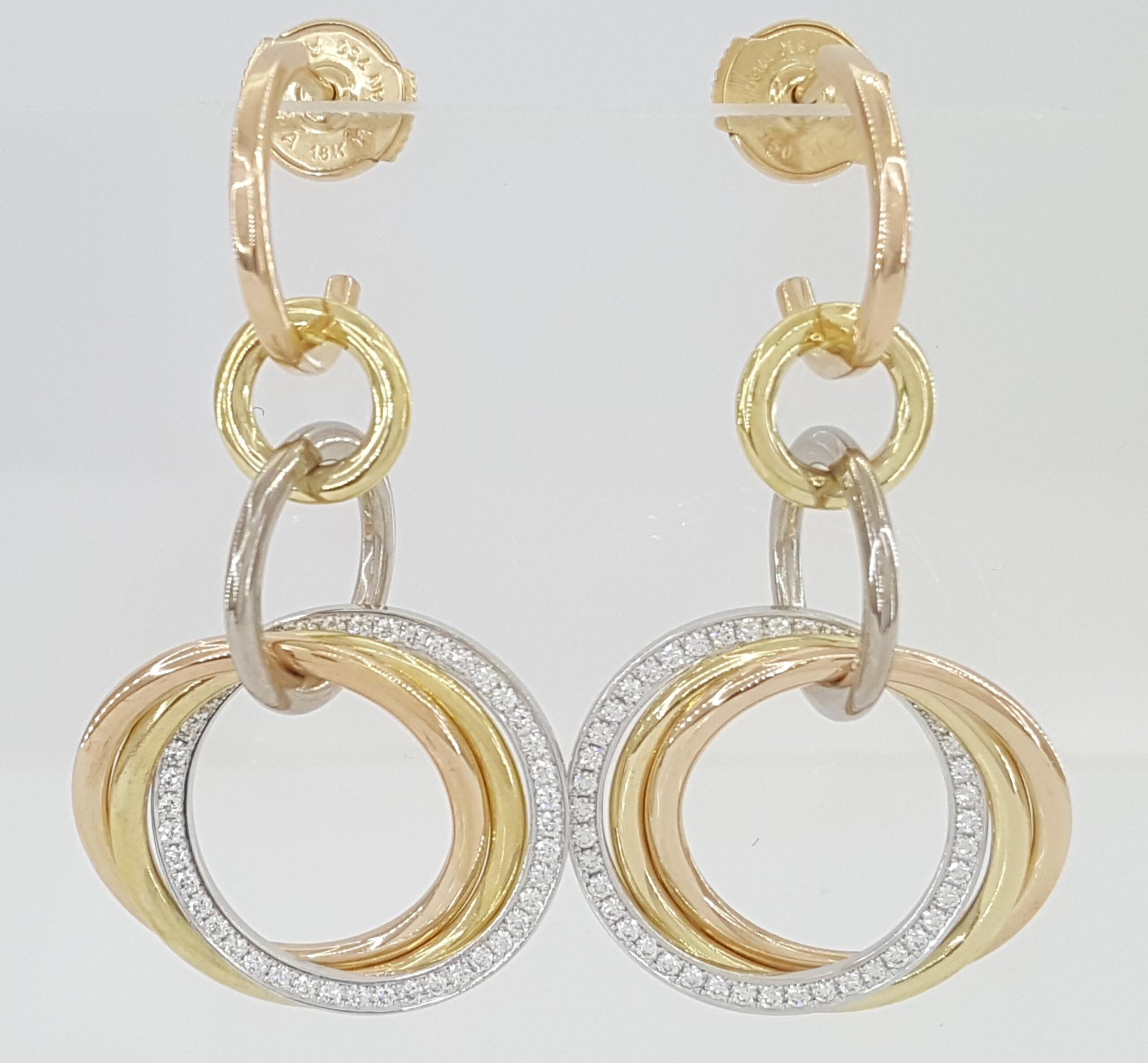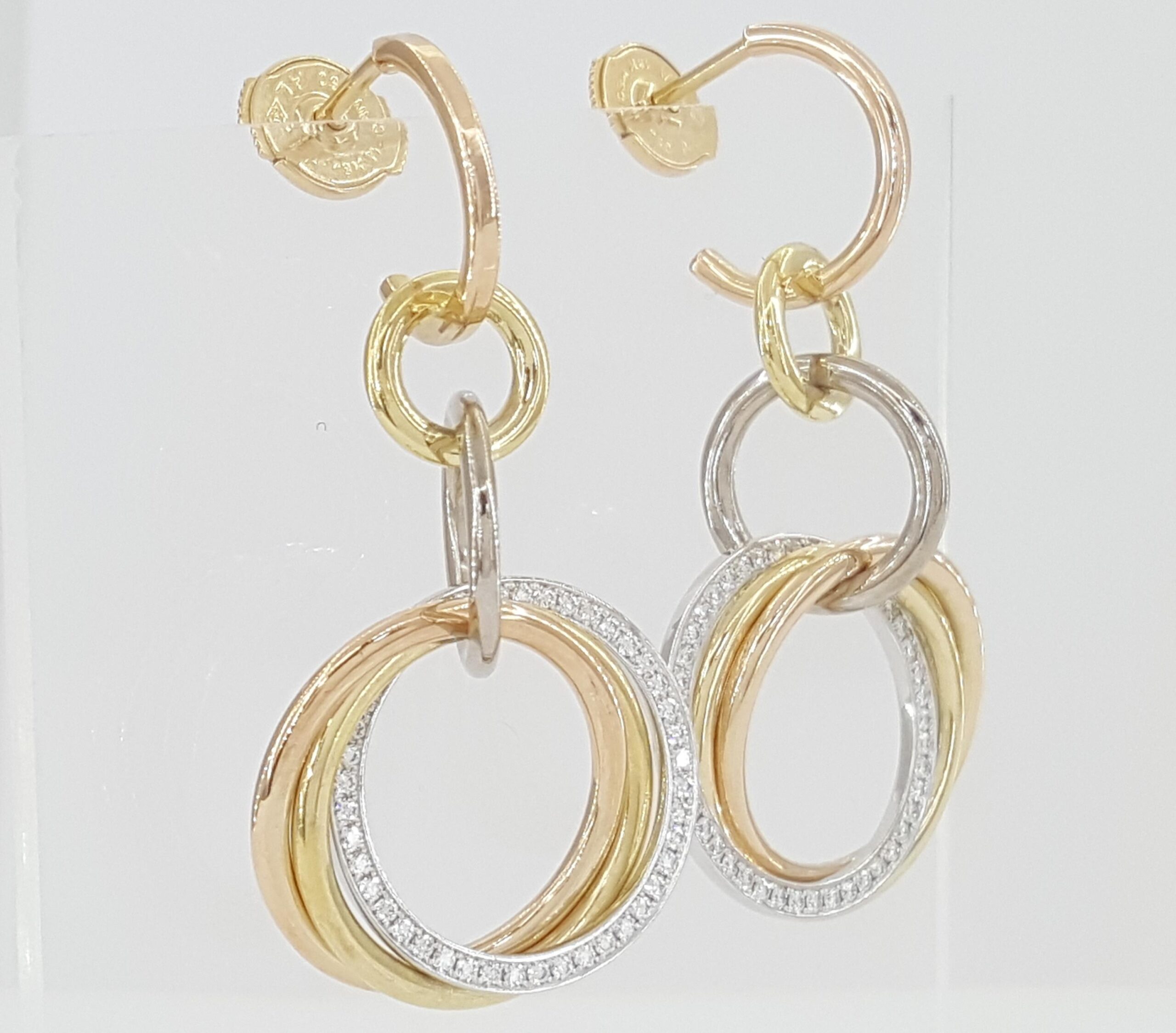 You are Purchasing a Authentic Cartier Trinity Crash Pave Diamond Drop Earrings 18K Multi-Colored Gold