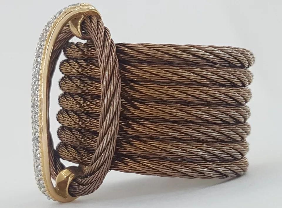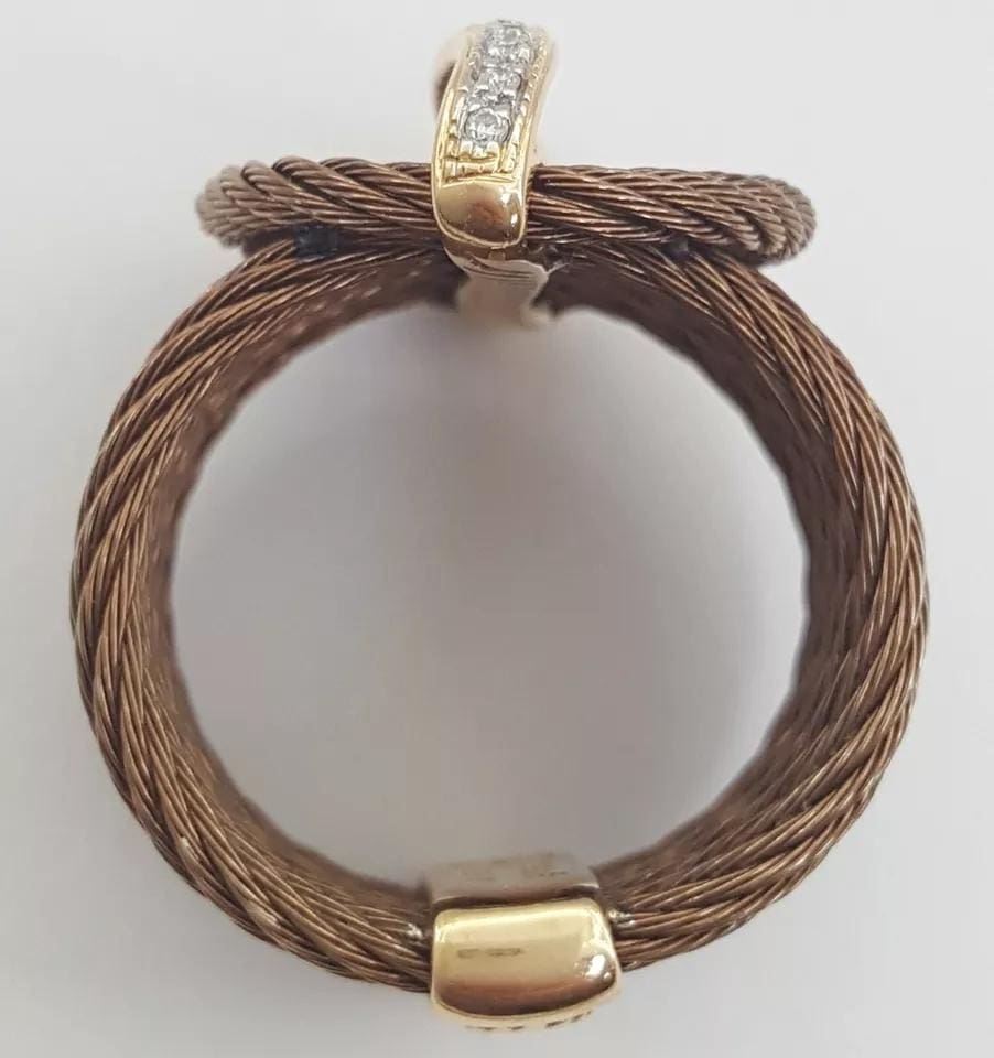 You are purchasing a Charriol Celtique 0.12 ct 7-Row Cable Diamond Band Ring 18K Yellow Gold & Stainless Steel 22.5mm