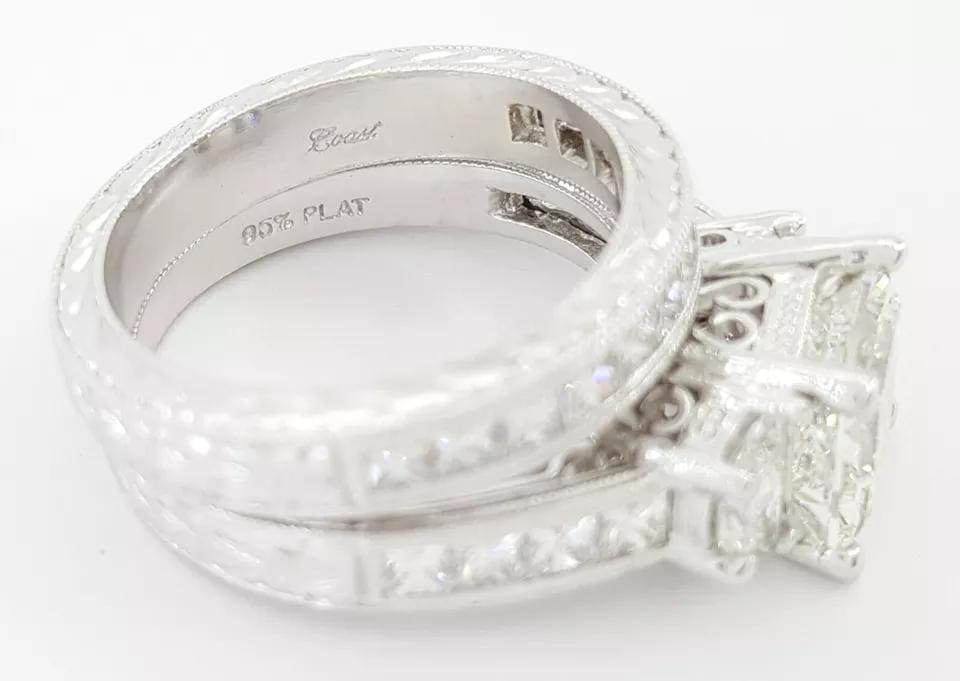 You are Purchasing a Coast 2.83 ct Total Weight Princess Cut Diamond Platinum Engagement Ring & Band Set.