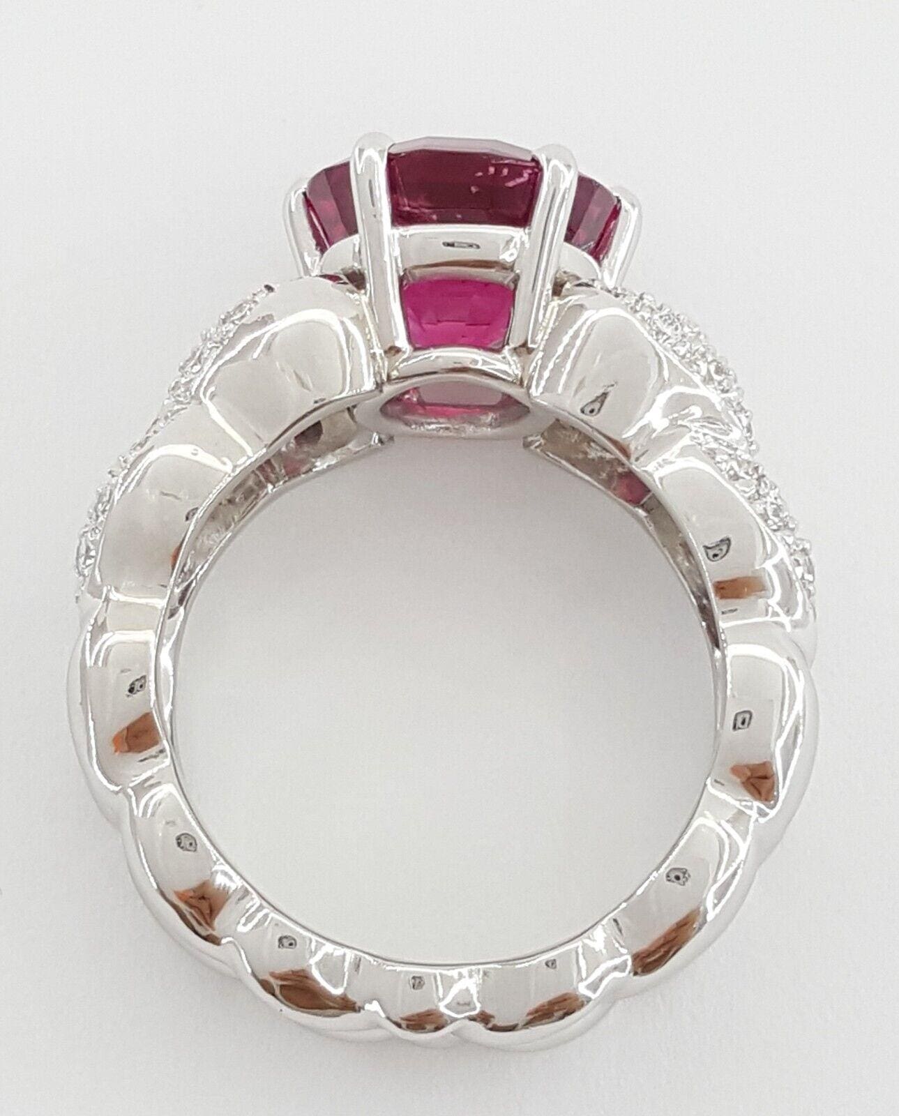 You are buying a 5 ct Total Weight Cushion Mixed Checkerboard Cut Red Spinel & Pave Diamond Platinum Engagement Ring.
