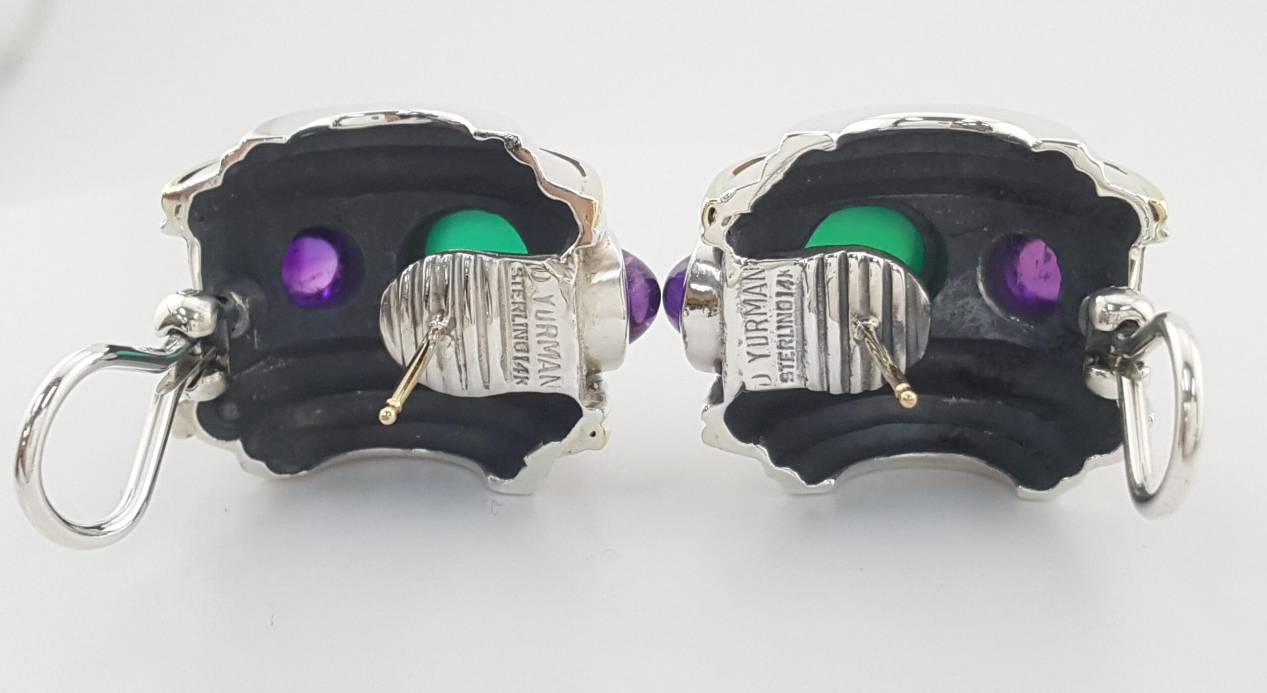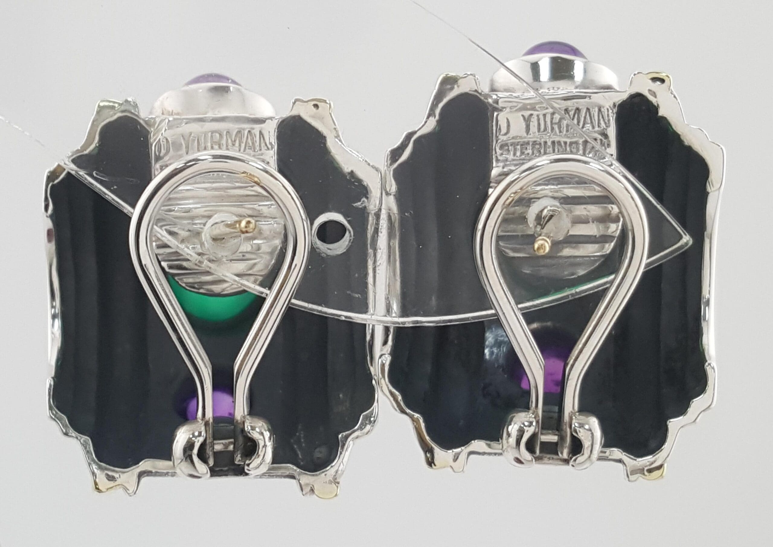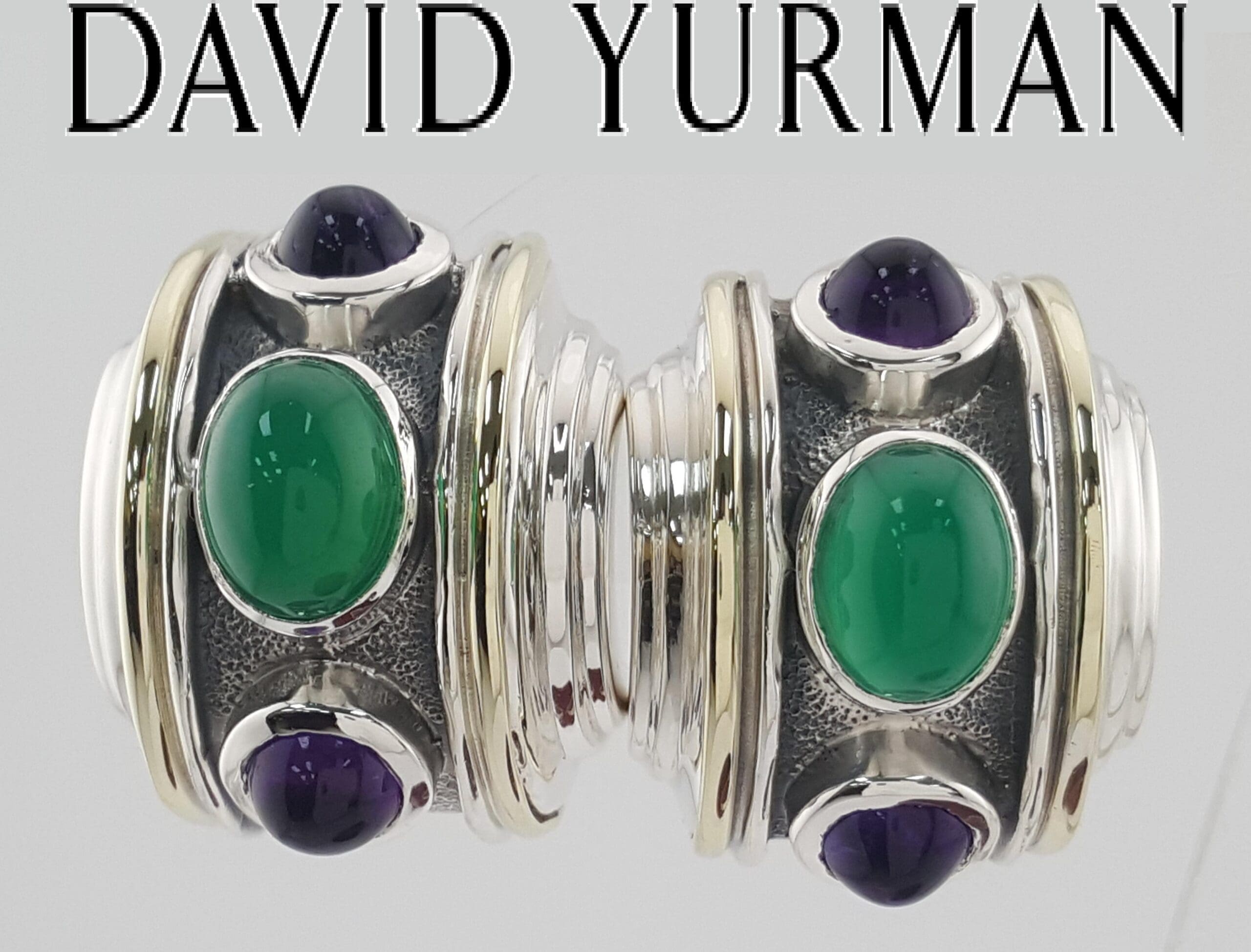 You are purchasing an Authentic Pair of David Yurman Dyed Chalcedony & Amethyst Earclip Earrings in 14k Yellow Gold & Sterling Silver