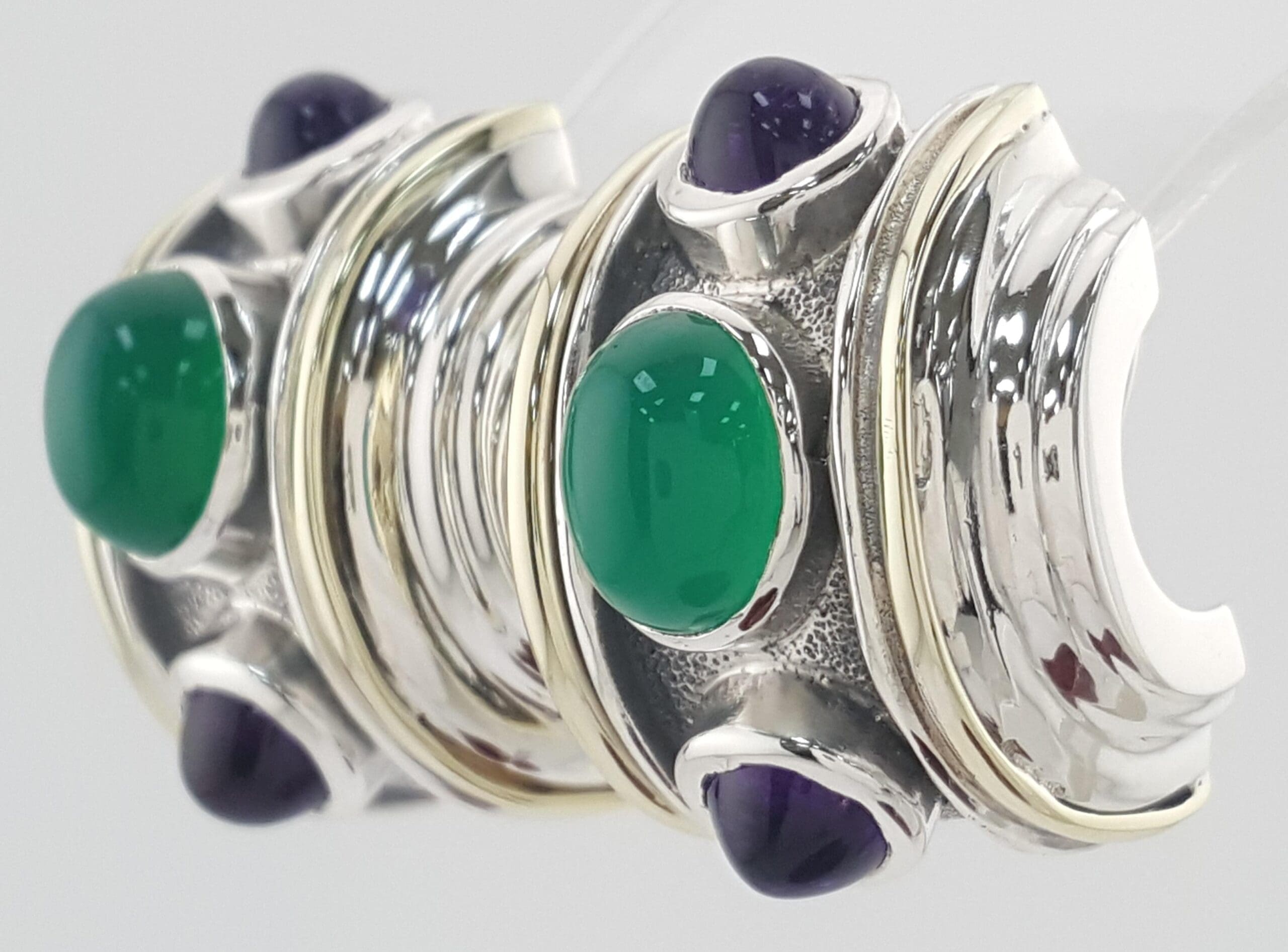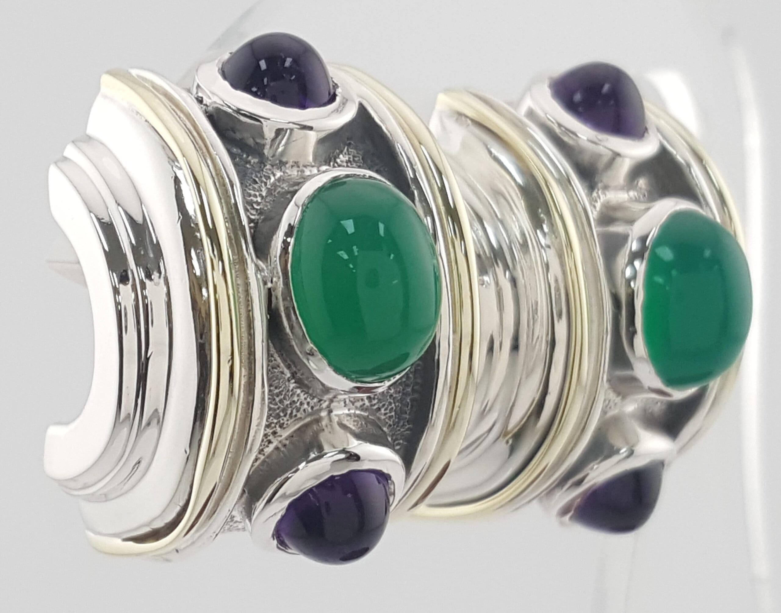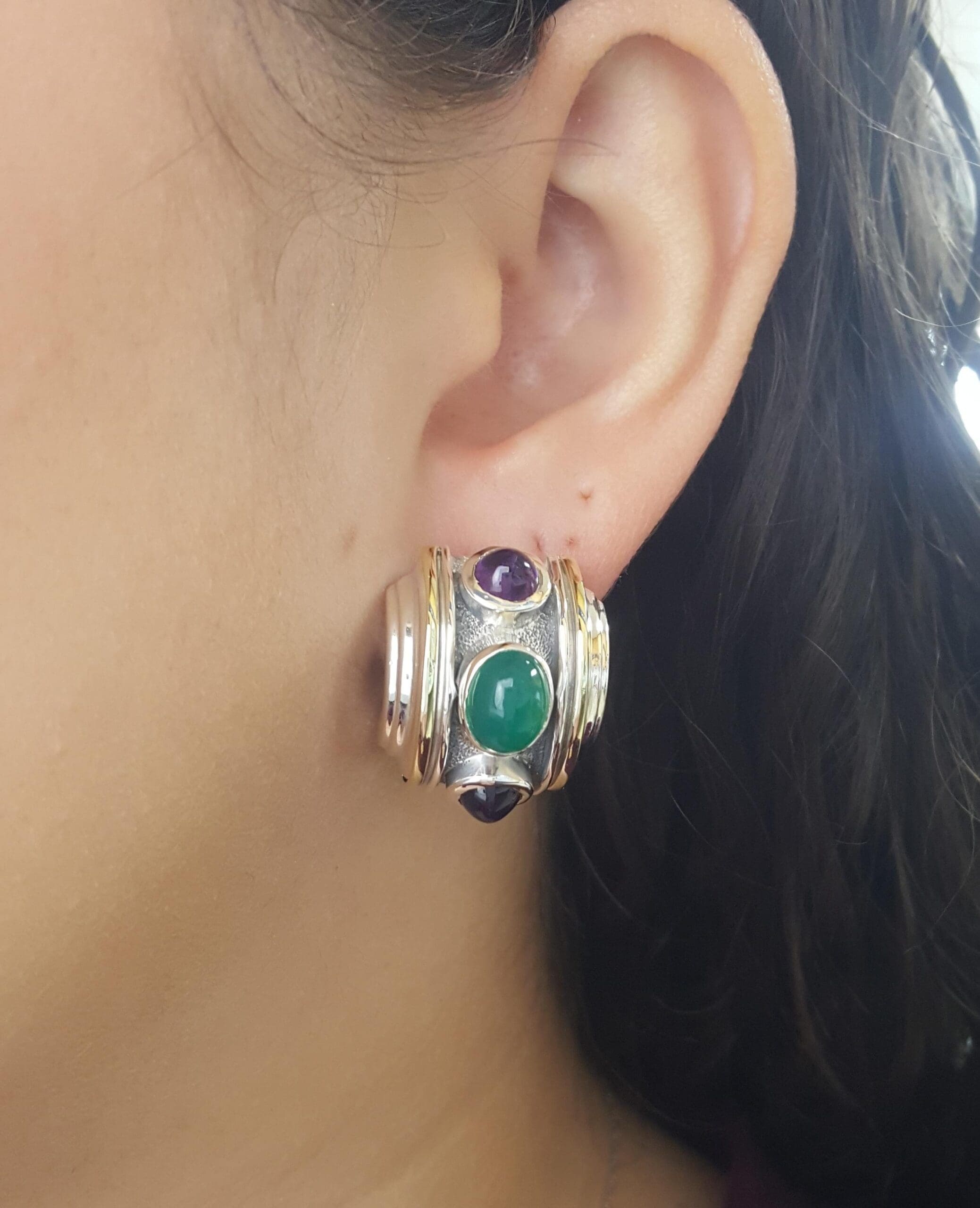 You are purchasing an Authentic Pair of David Yurman Dyed Chalcedony & Amethyst Earclip Earrings in 14k Yellow Gold & Sterling Silver