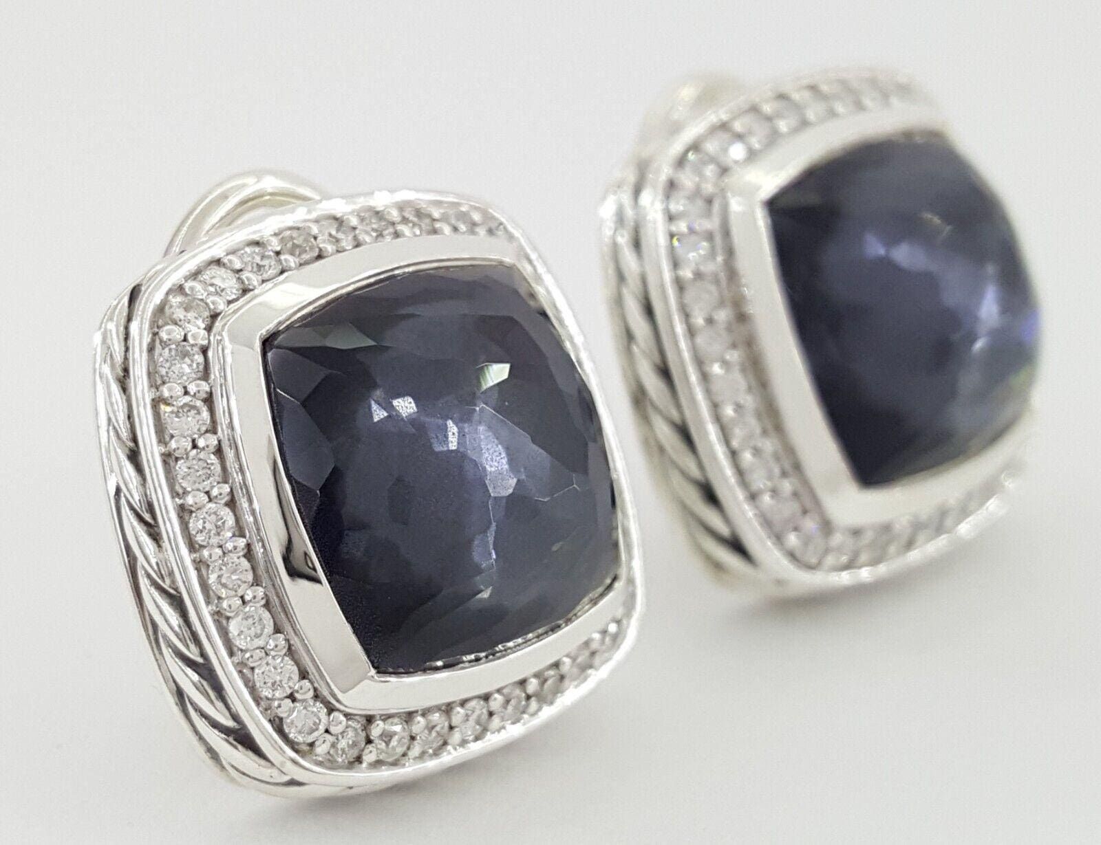 You are purchasing an Authentic 0.82 ct David Yurman Sterling Silver Albion Diamond & 11mm Hematite Earrings Medium.