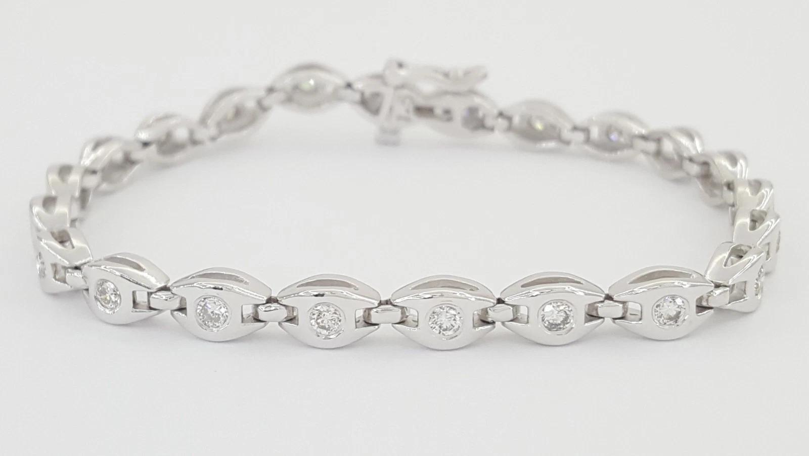 You are purchasing a 1.5 ct total weight Round Brilliant Cut Diamond Bezel Set Tennis Bracelet in 14K White Gold.