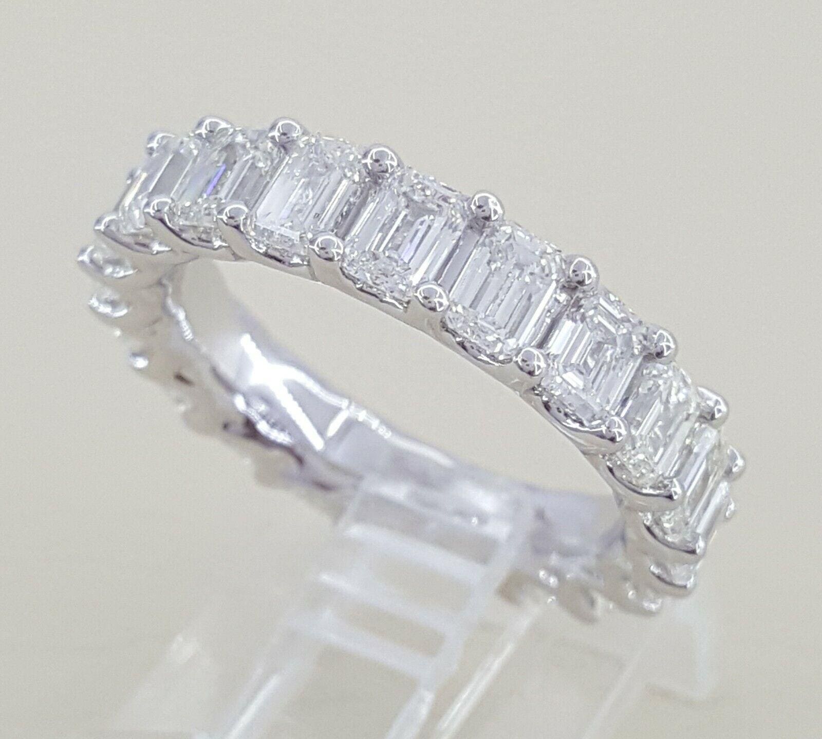 You are Purchasing a 4 ct Total Weight 14K White Gold Emerald Cut Diamond Full Circle / Eternity / Wedding Band / Anniversary Ring 4.6 mm wide.