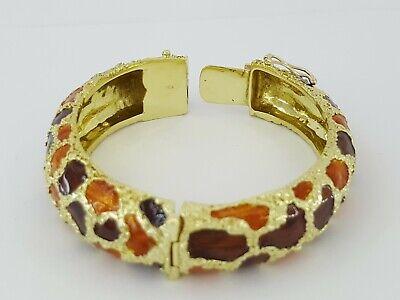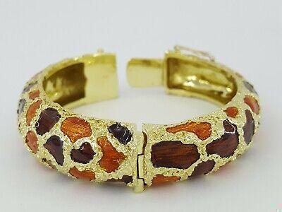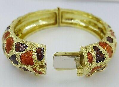 Enamel Bracelet Bangle 82.3 Grams 17 x 12 mm 6.25″ Small Vintage 18K Yellow Gold