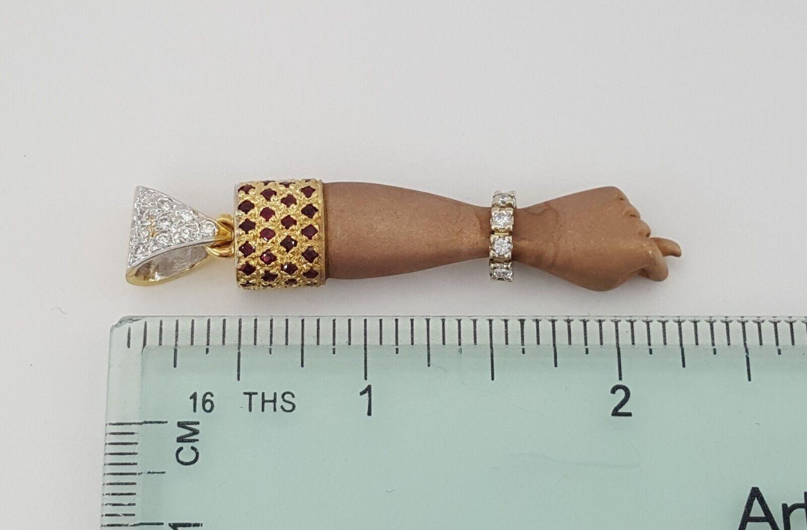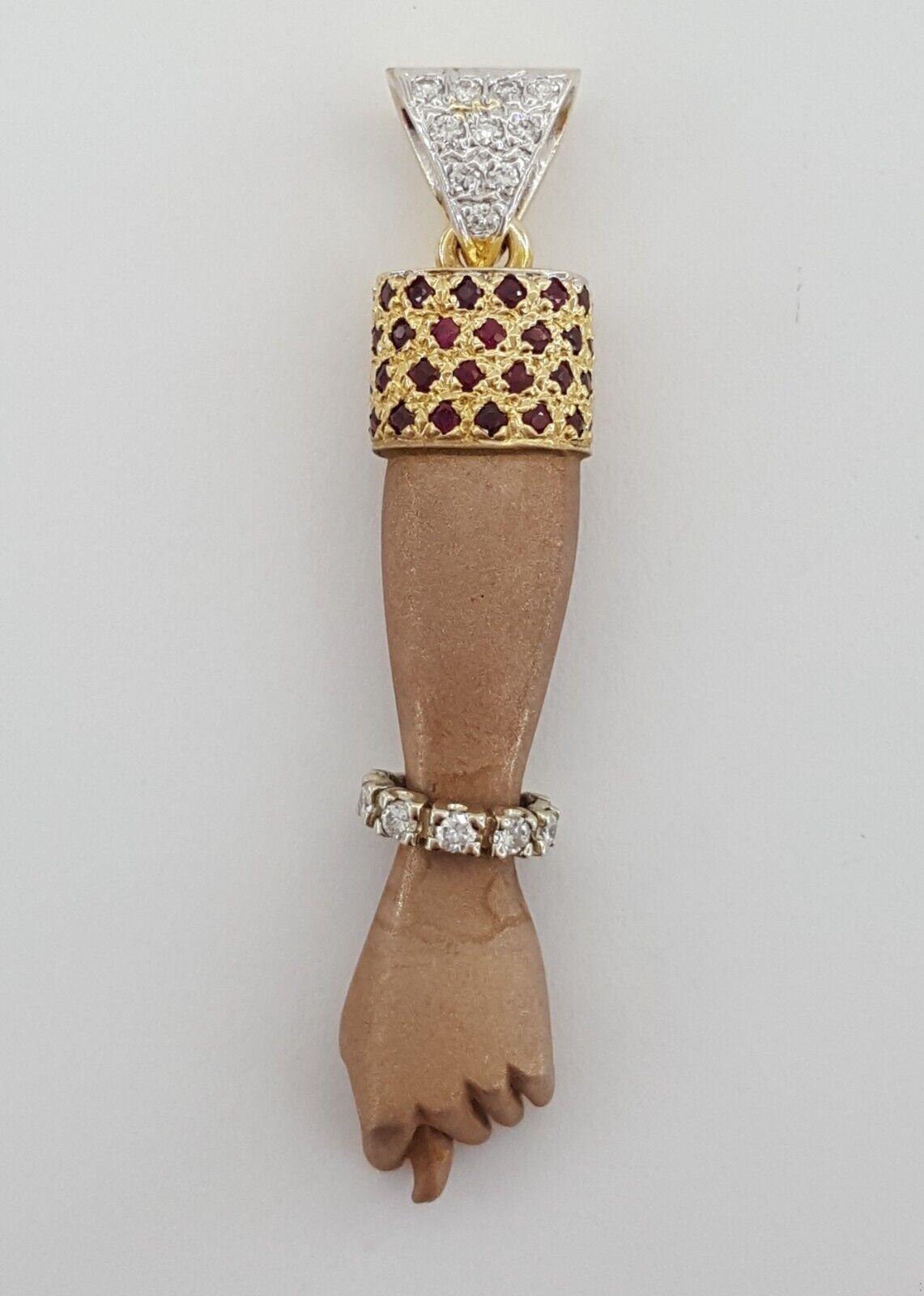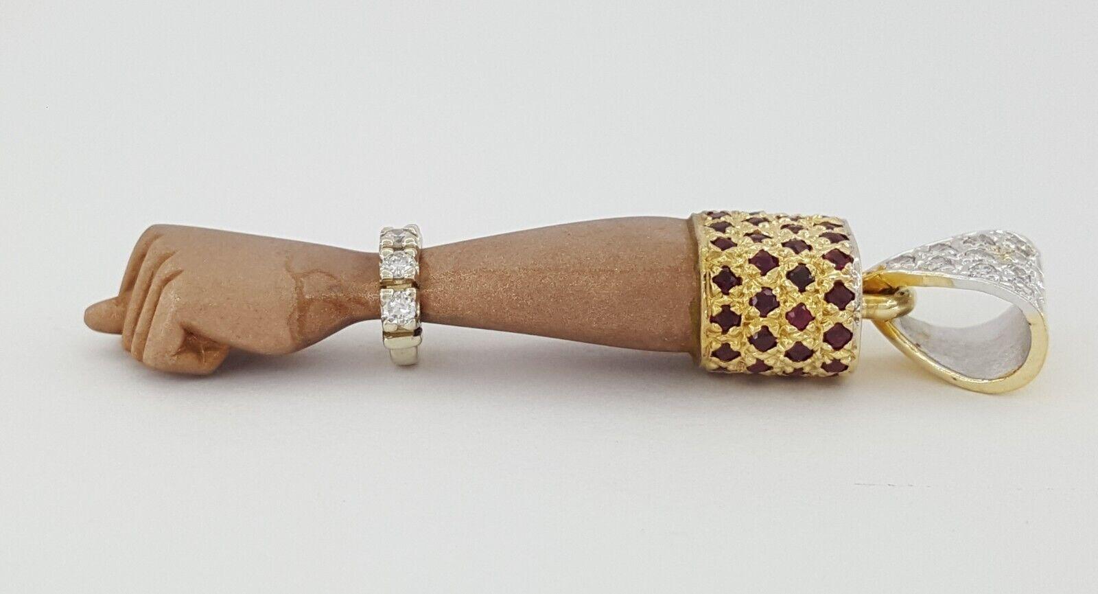 Figa Good Luck Ruby & Diamond Fist/Hand Pendant 24 Grams 14K 2-Tone Gold 1.5 ct