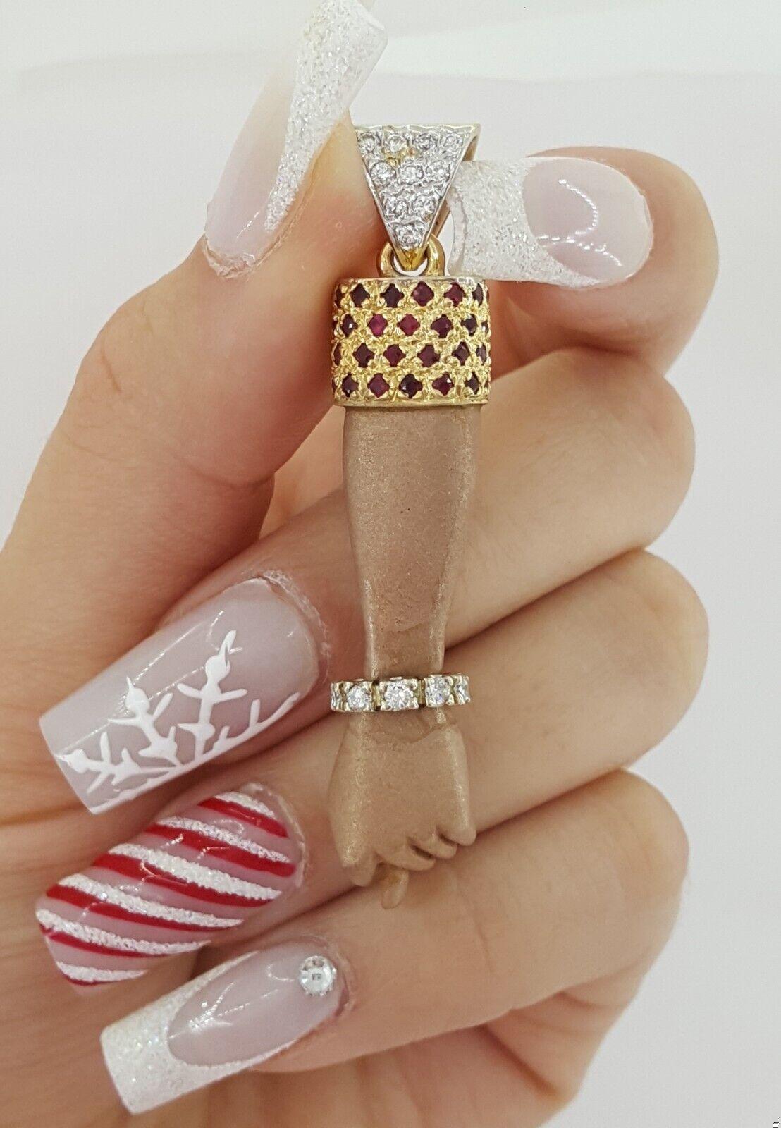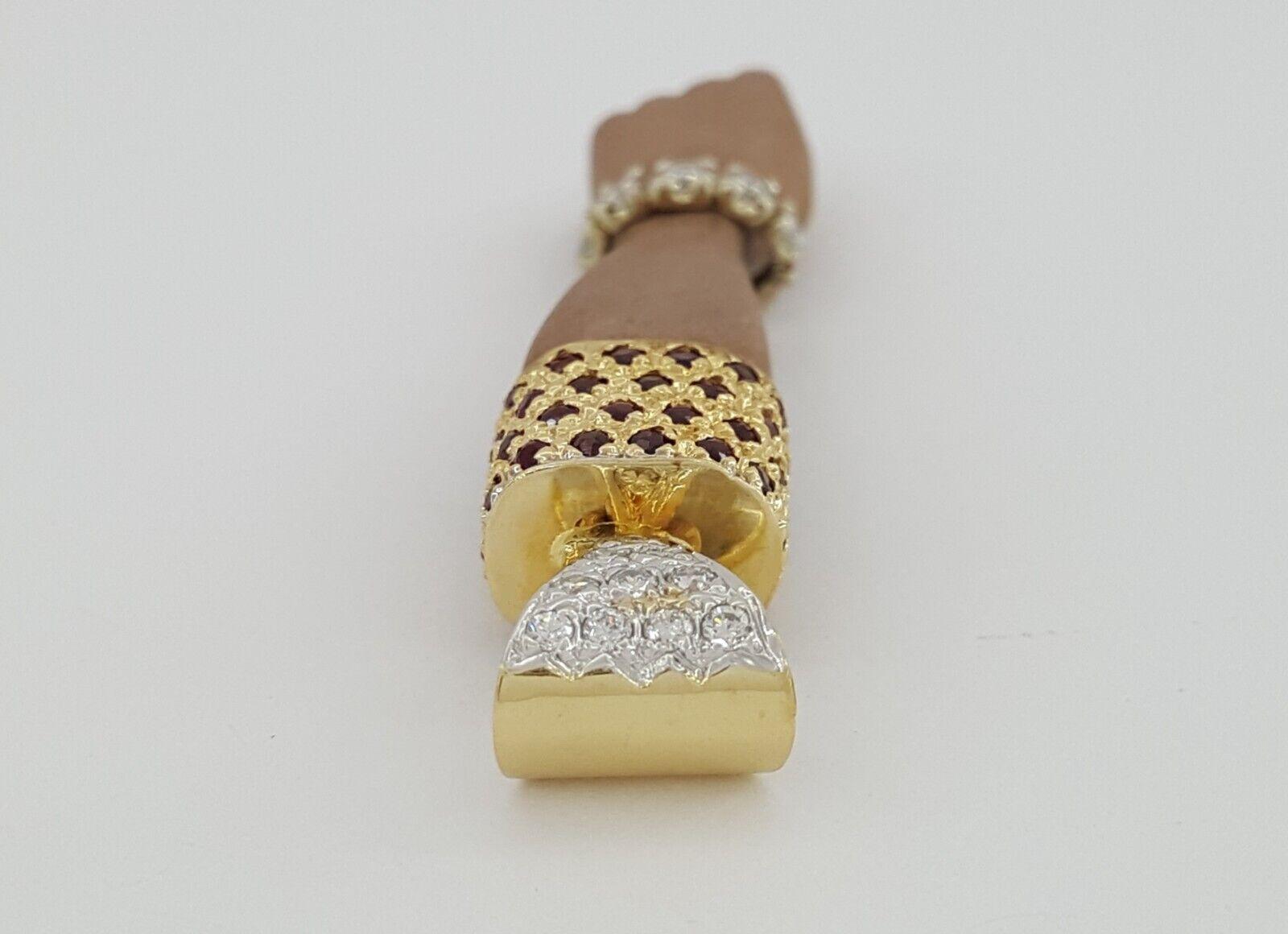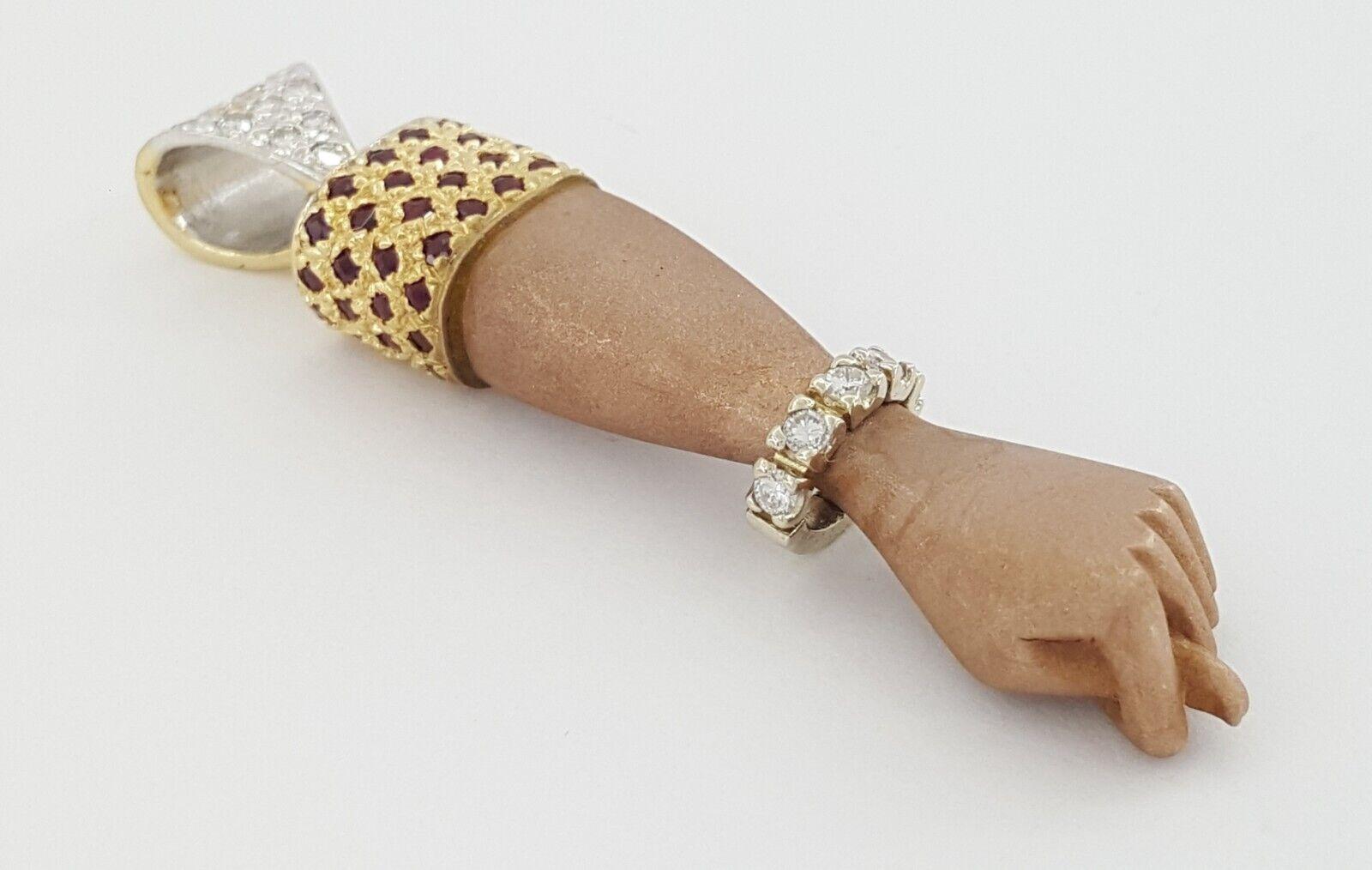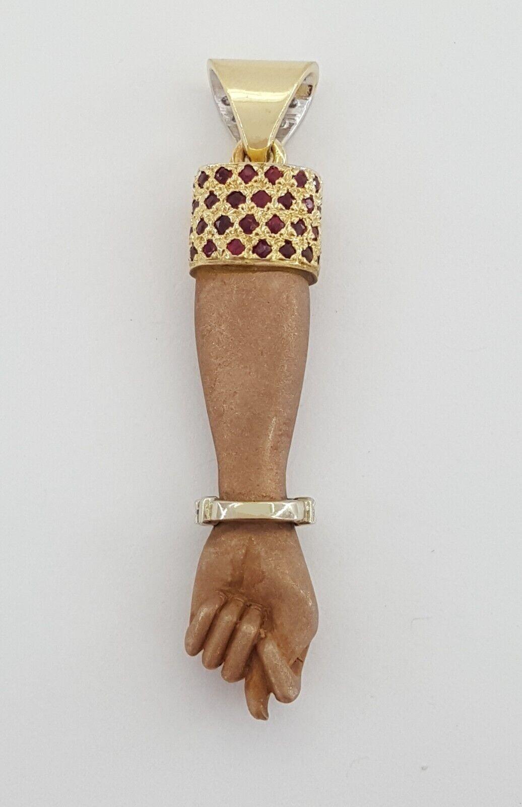 Figa Good Luck Ruby & Diamond Fist/Hand Pendant 24 Grams 14K 2-Tone Gold 1.5 ct