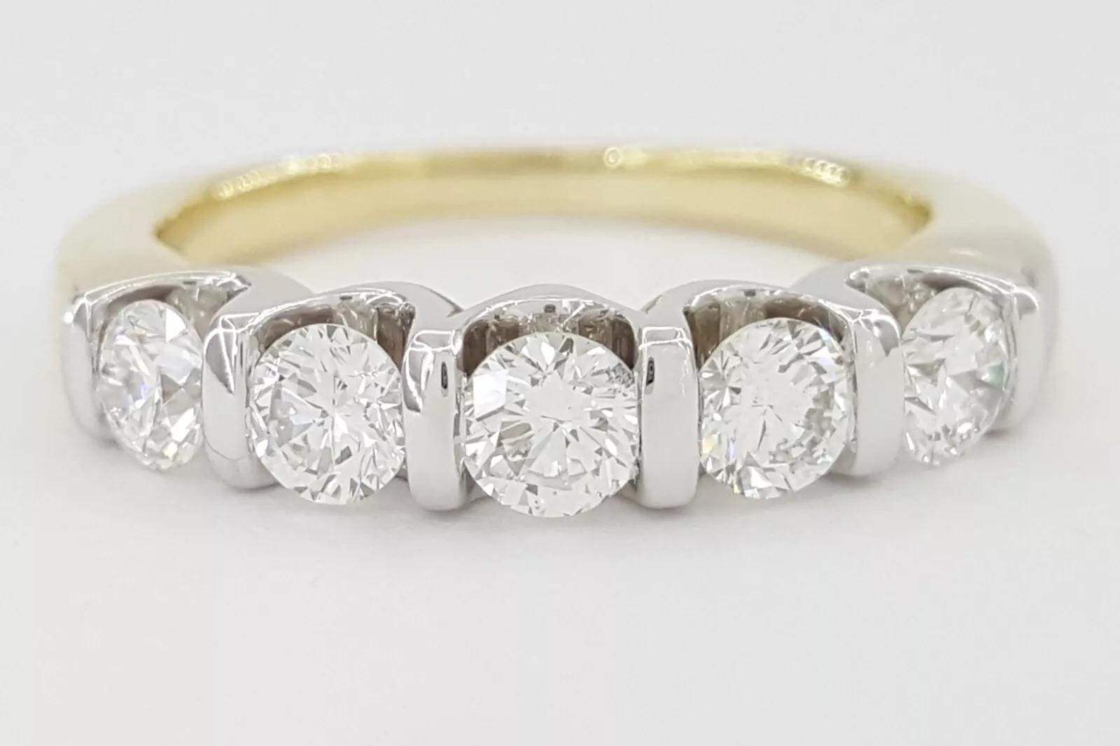 Five 5 Stone Round Brilliant Cut Diamond Bar Set 2-Tone Gold Ring 1 ct 14k