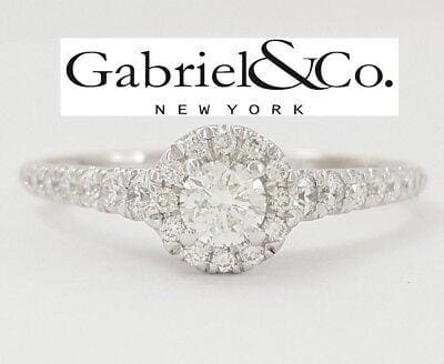You are Purchasing a Gabriel & Co. (ER8863W44JJ) 0.66 ct Total Weight 14K White Gold Round Brilliant Cut Diamond Halo Engagement Ring.